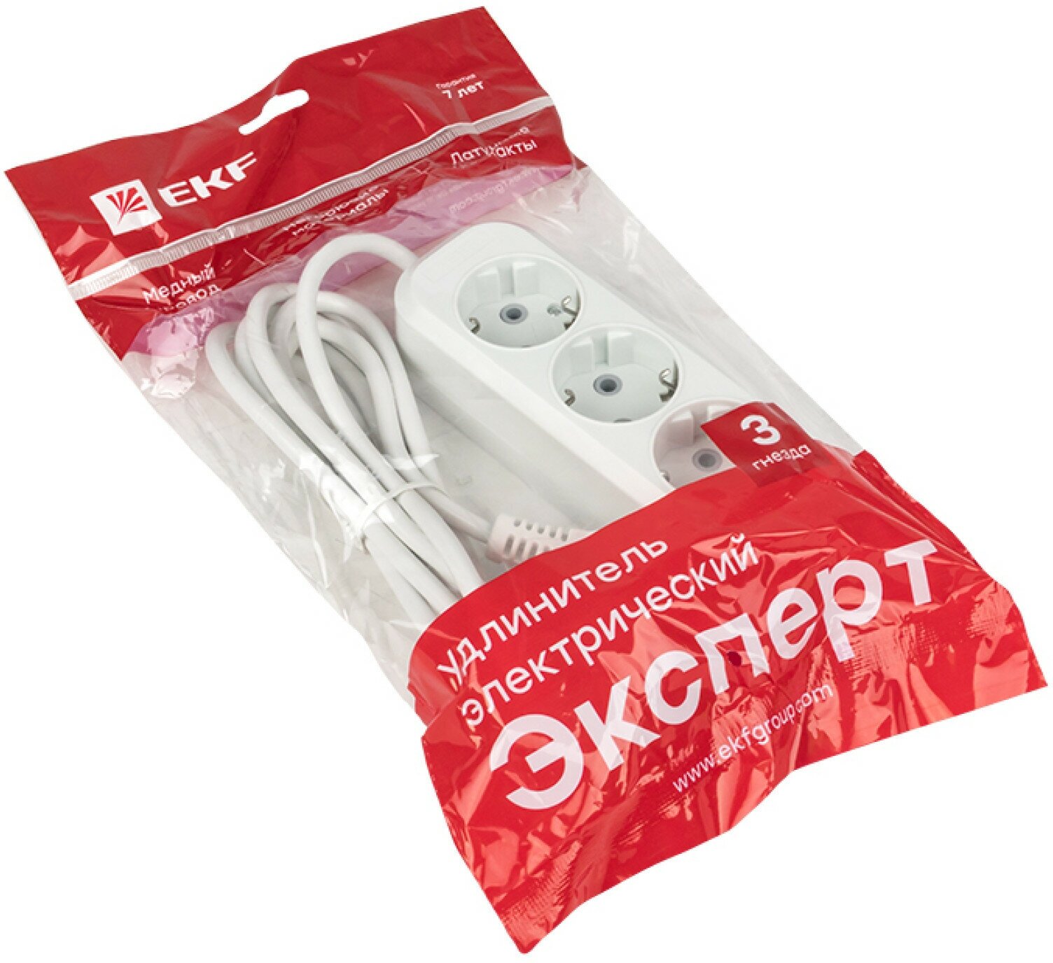 Удлинитель бытовой с заземлением, 3 розетки, 3 метра, Эксперт (16А-3,5кВт, ПВС)