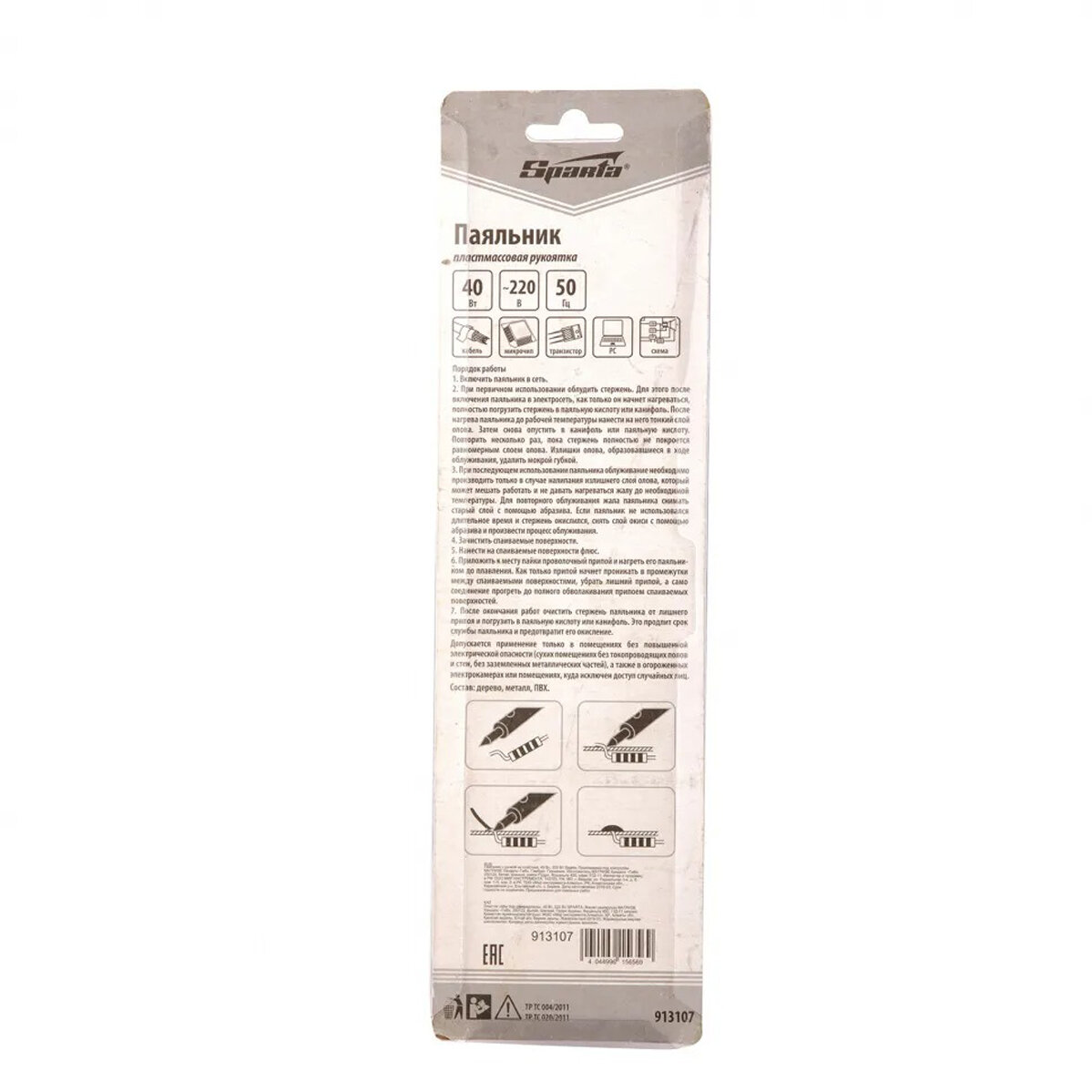 Паяльник С Ручкой Из Пластика, 40 Вт, 220 В Sparta 913107 Sparta 913107 Sparta арт. 913107
