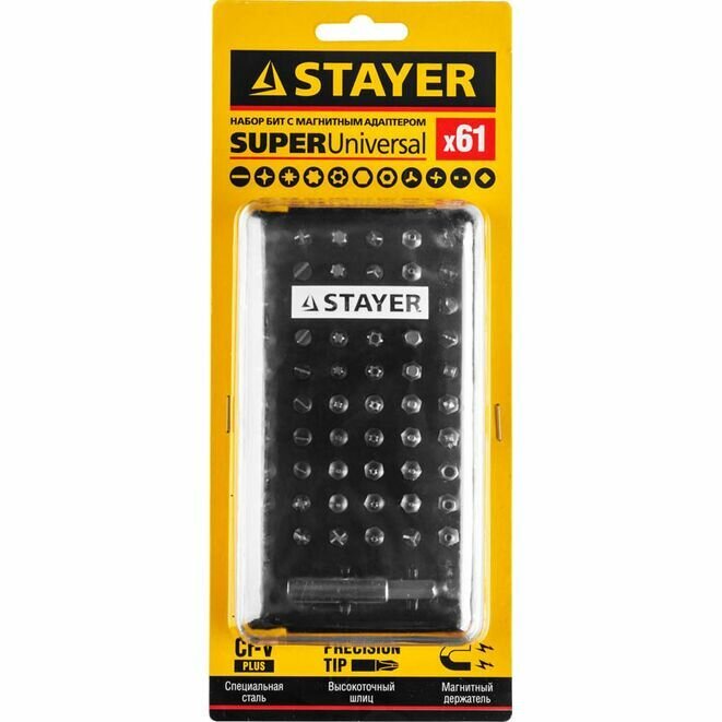 Набор бит с магнитным адаптером STAYER SuperUniversal 61 шт, (26084-H61)