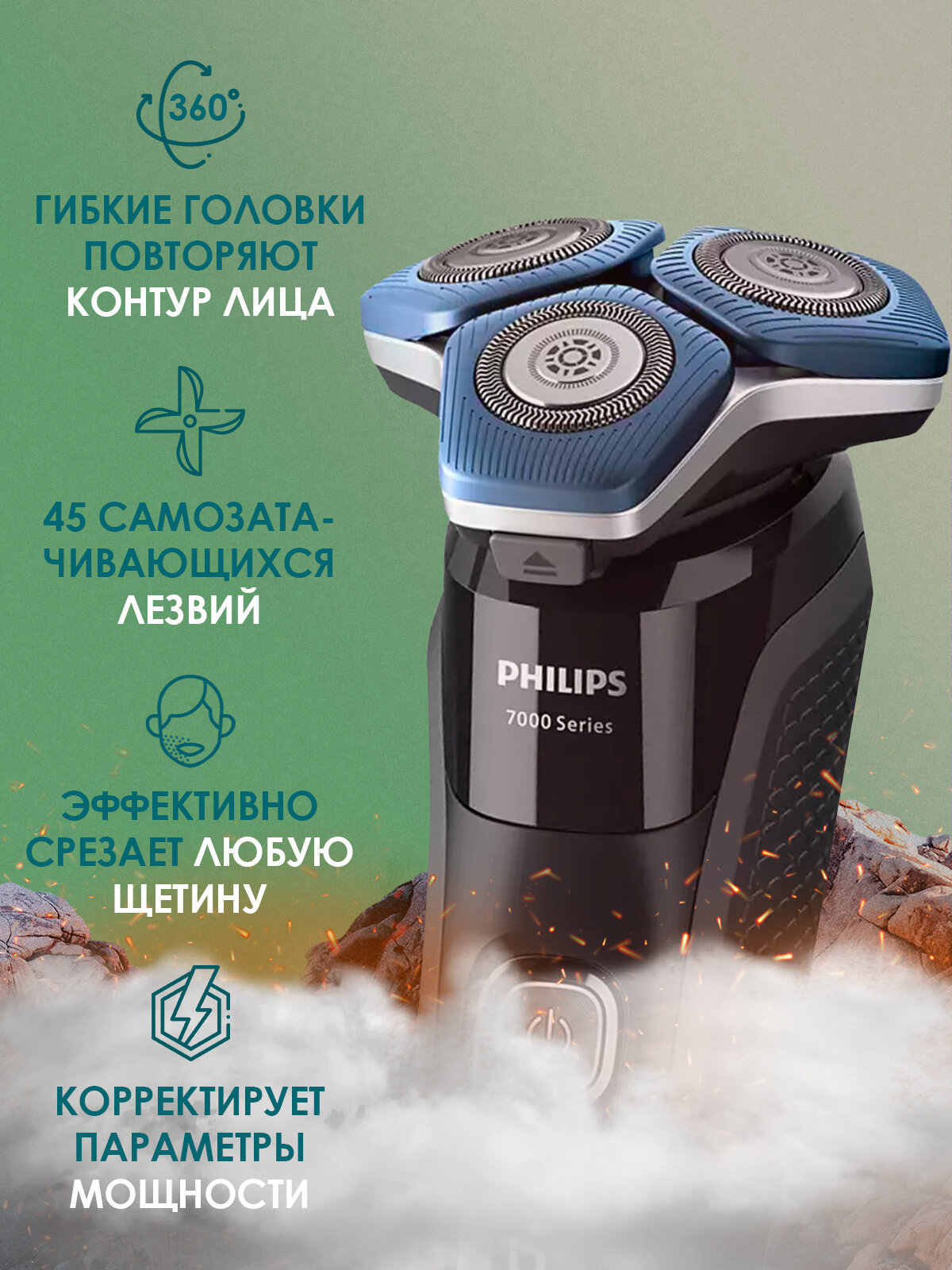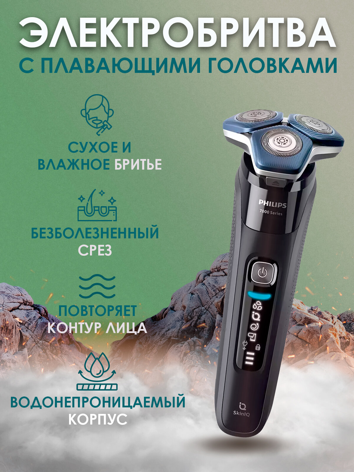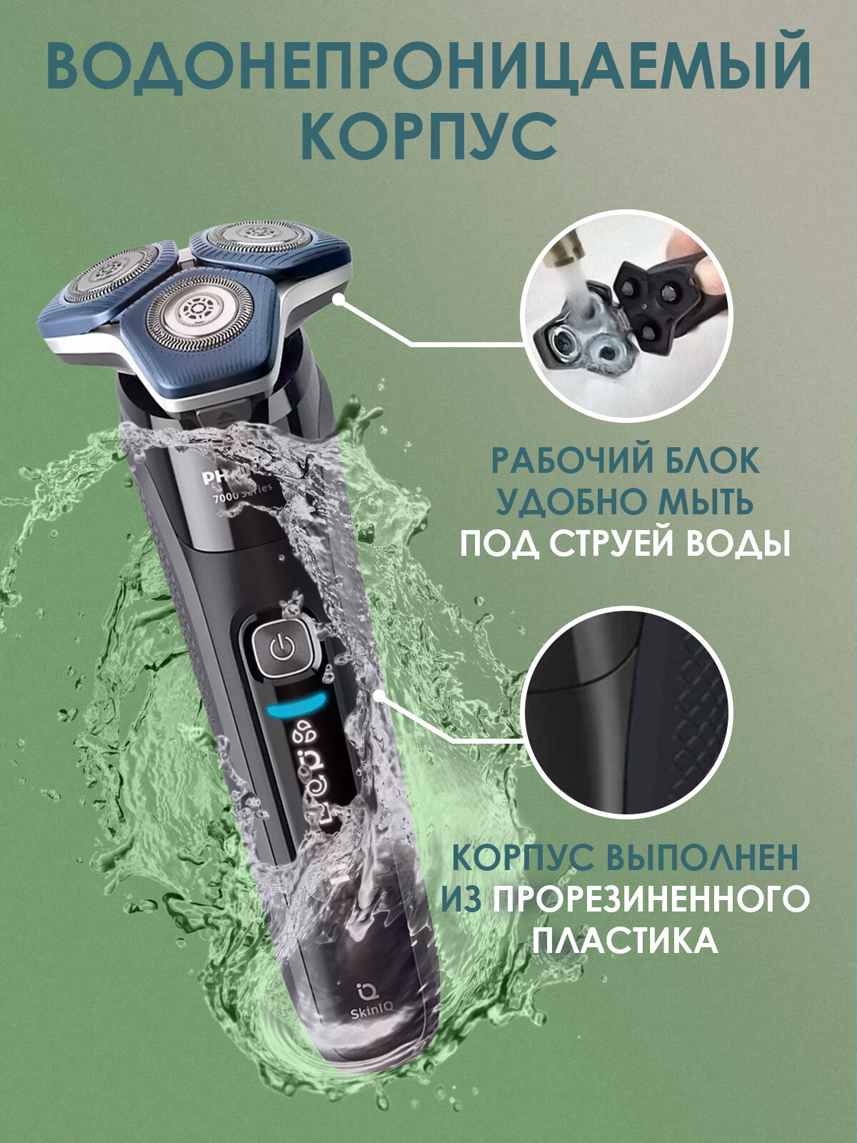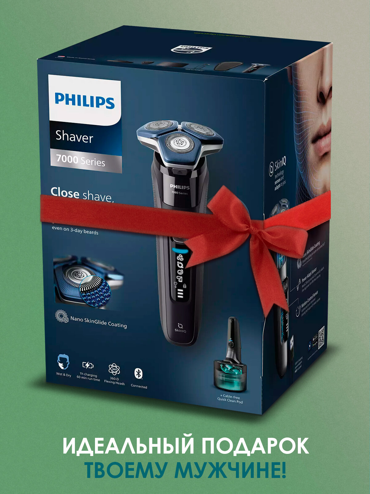 Электробритва Philips Умная электробритва для сухого и влажного бритья Philips Series 7000 SkinIQ S7786/59, светло-синий интересное: