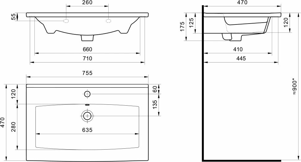 | Расположение отверстия под смеситель | в центре |