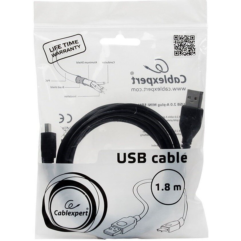 Кабель Cablexpert USB 2.0 Pro AM/miniBM 5P, 1.8м, экран, черный, пакет