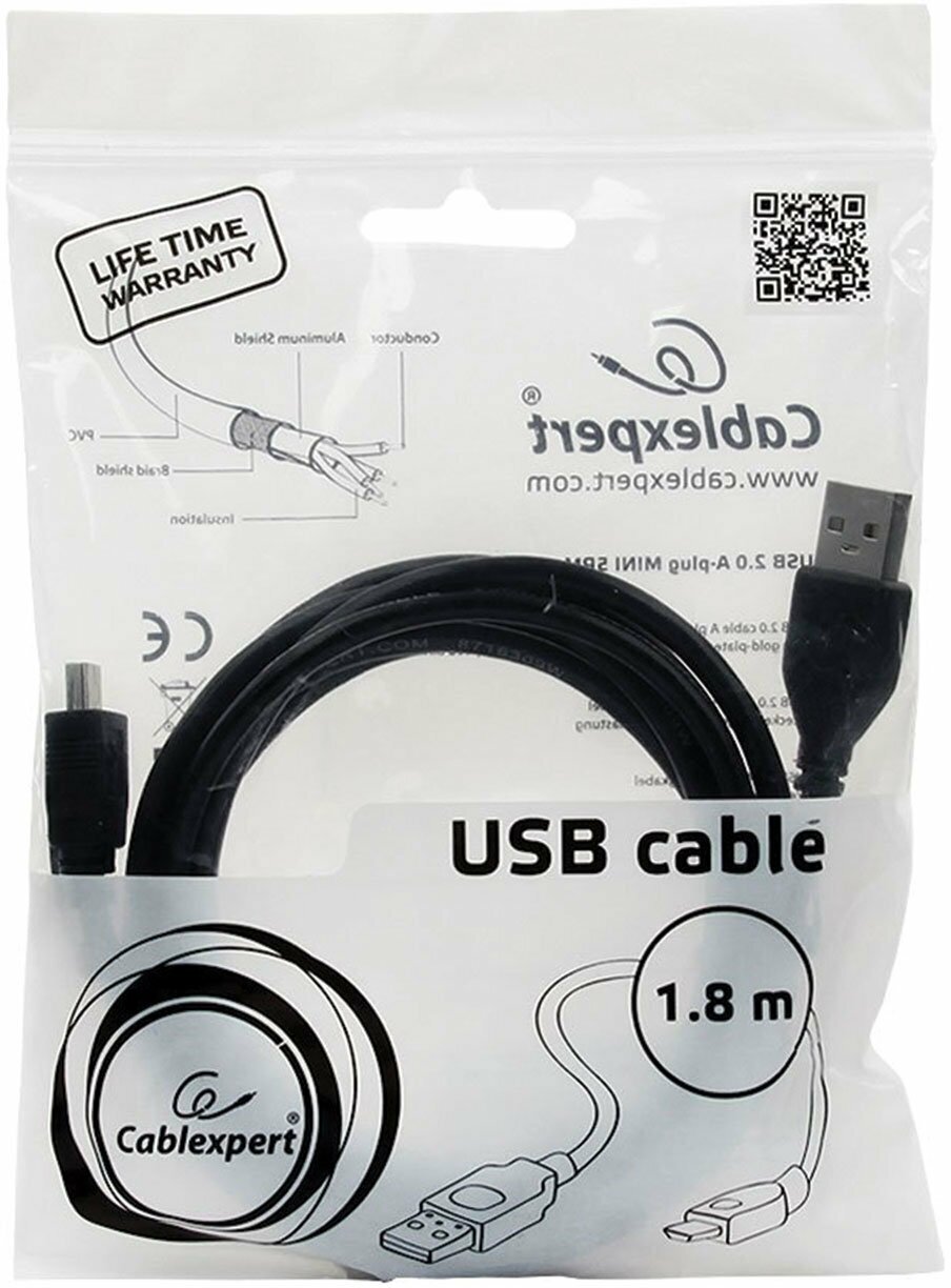 Кабель Gembird USB - miniUSB (CCP-USB2-AM5P-6), 1.8 м, черный