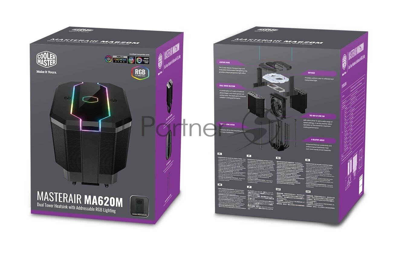 Кулер Cooler Master MasterAir MA620M MAM-D6PN-120PA-R1 650-2000 RPM, 200W, ARGB LED fan, ARGB LED controller, Full Socket Support