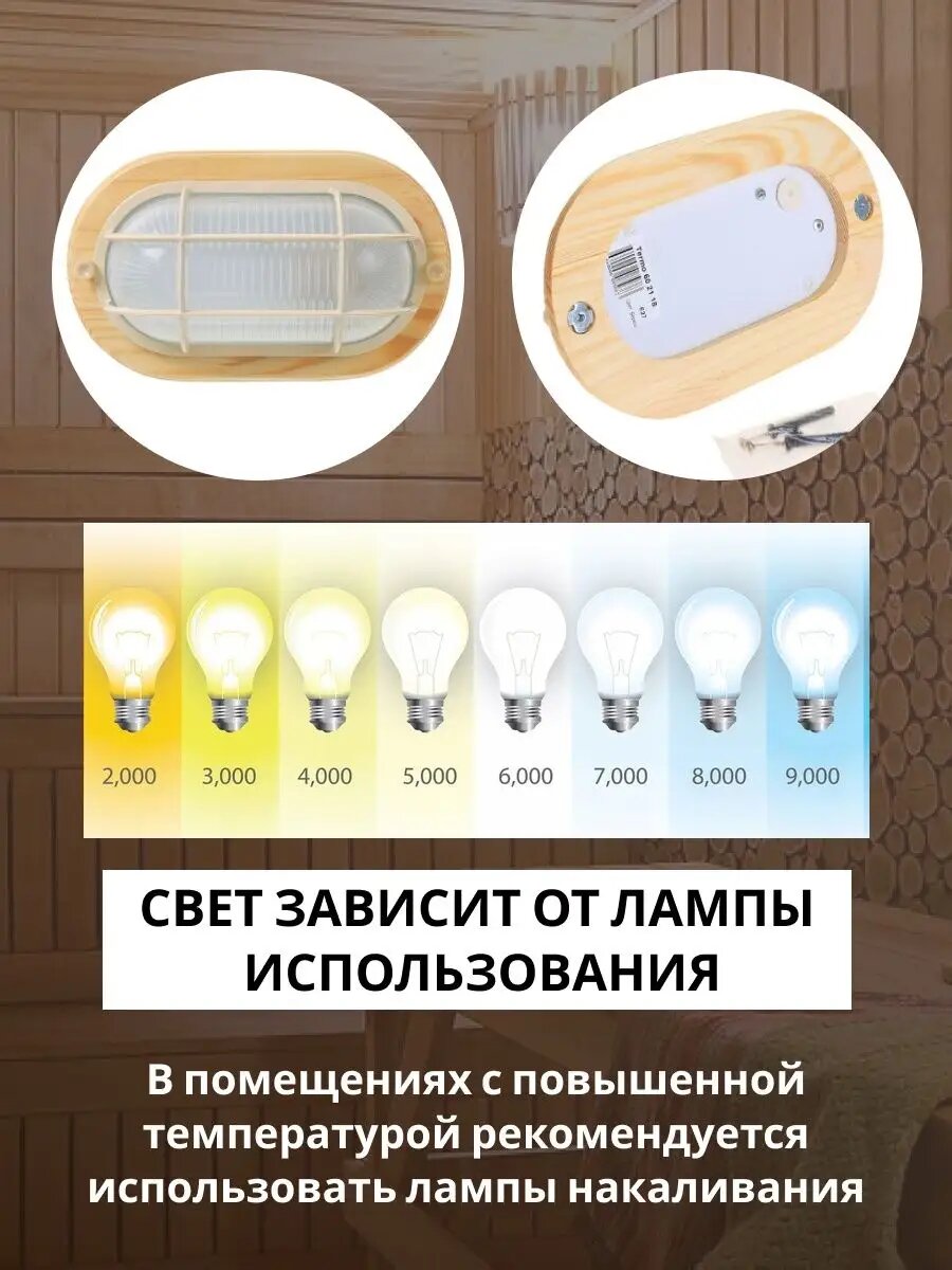 Feron НБО 04-60-012 Светильник для бани и сауны 220V 60Вт Е27 IP54 дерево, клен, овал, с решеткой 11 .