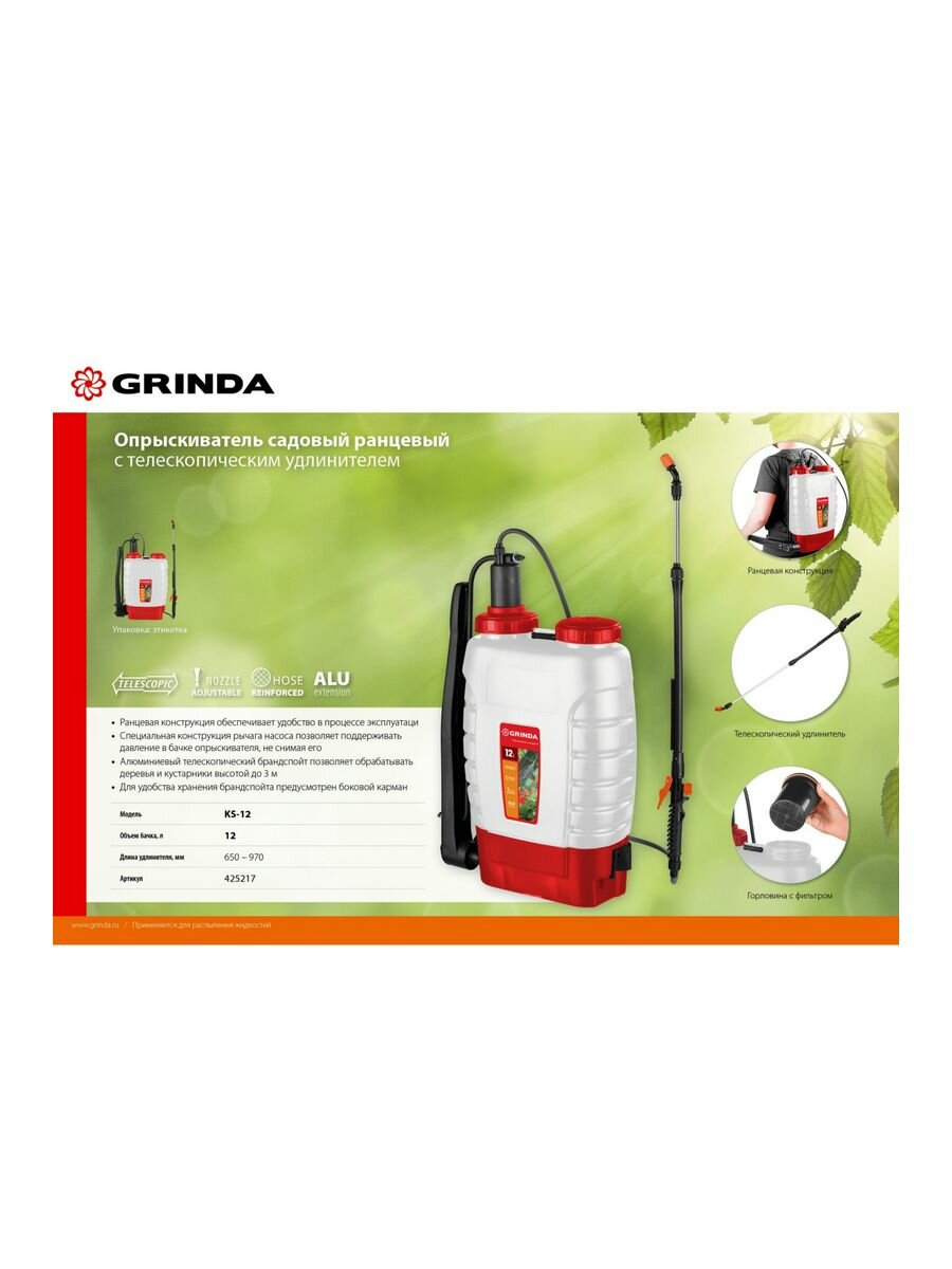 Ранцевый опрыскиватель GRINDA KS-12 12 л, с телескопическим удлинителем (425217)