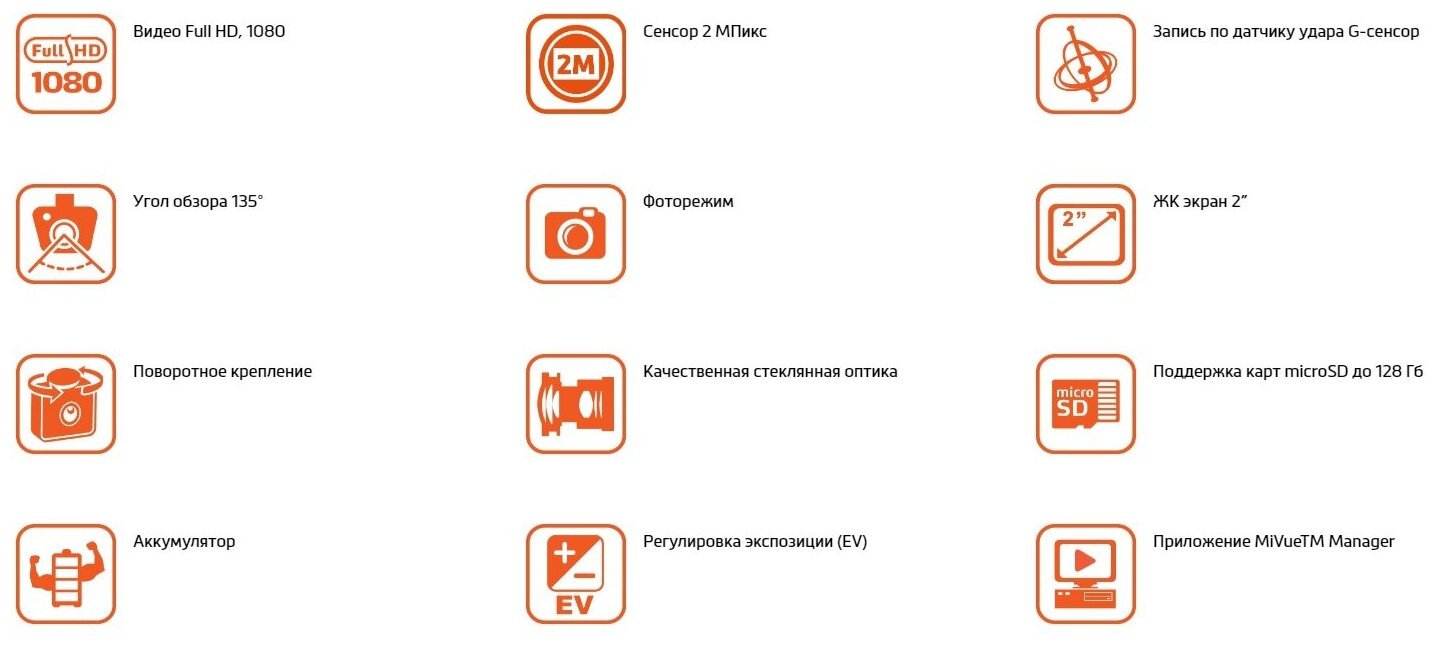 Видеорегистратор автомобильный MIO ViVa V20, экран 2", 135° 1920x1080 FULL HD, G-сенсор, MIO-VIVA-V20