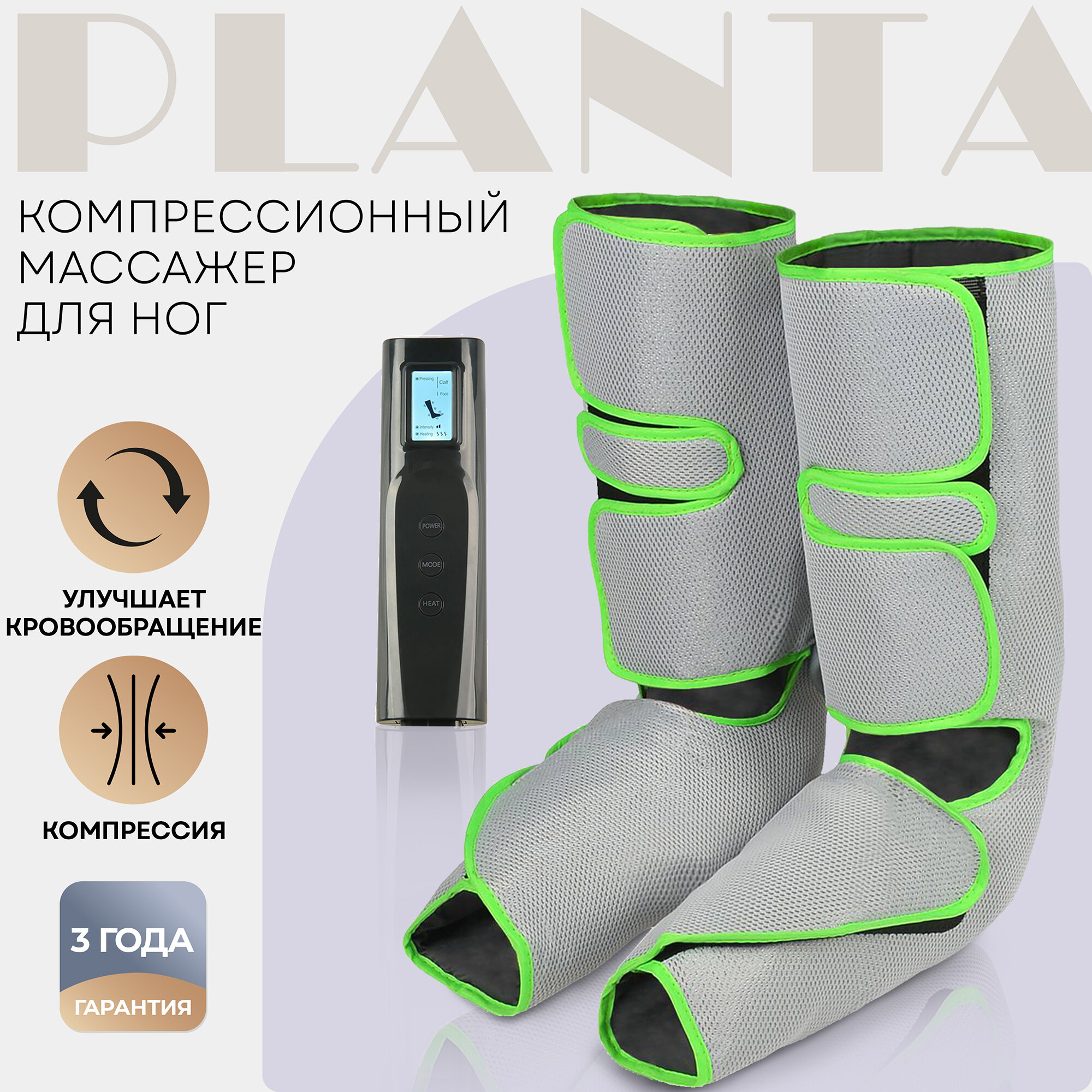 PLANTA Компрессионный лимфодренажный массажер MFC-40, 3 режима, 3 уровня интенсивности, прессотерапия от отечности в ногах и усталости, для улучшения кровообращения, борьбы с целлюлитом