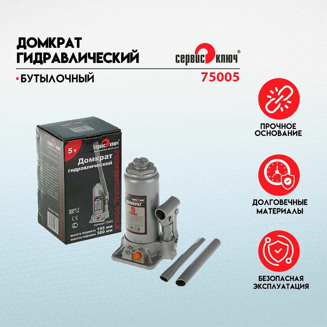 Домкрат 5Т Гидравлический Высота 195-380 Сервис Ключ 75005 сервис ключ арт. 75005