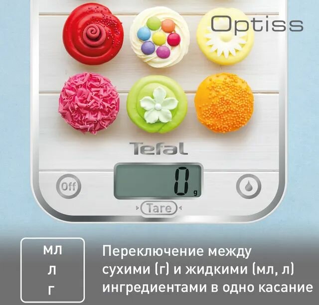 СохранитьВесы кухонные Tefal BC5122V1, электронные , до 5 кг, рисунок "Капкейки" интересное:
