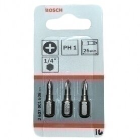 Бита Ph1 3 шт. (25 мм; Extra Hart, хвостовик шестигранный 1/4") Bosch 2607001508