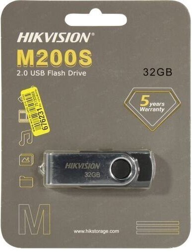 Hikvision Накопитель USB flash 32ГБ Hikvision M200S HS-USB-M200S/32G, черно-серебр. (USB2.0)