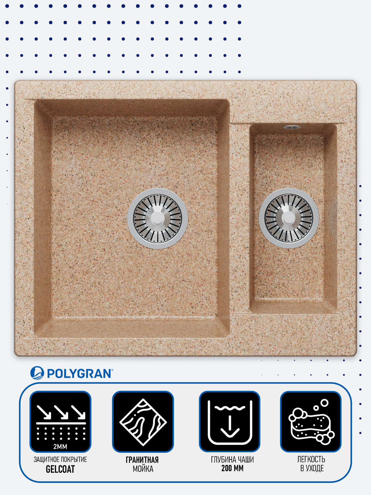 Мойки Polygran BRIG-620, мойка, мрамор, песочный 302