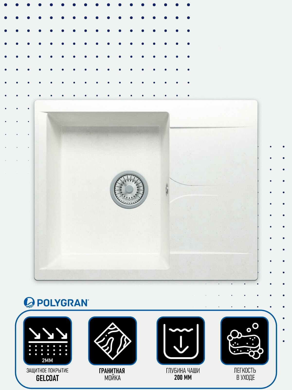Мойка кухонная Polygran Gals 620 белый хлопок
