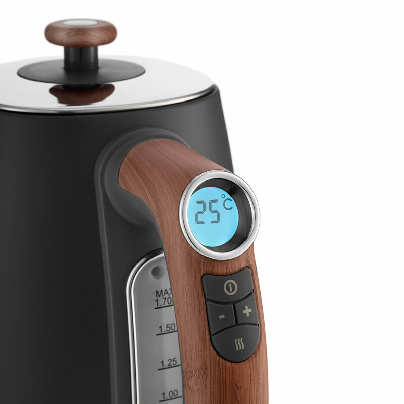 Стильный дизайн чайника, удобный экран, где отображается температура. Очень приятный на ощупь, легко моется. Рекомендую хорошее сочетание цены и качества. |
