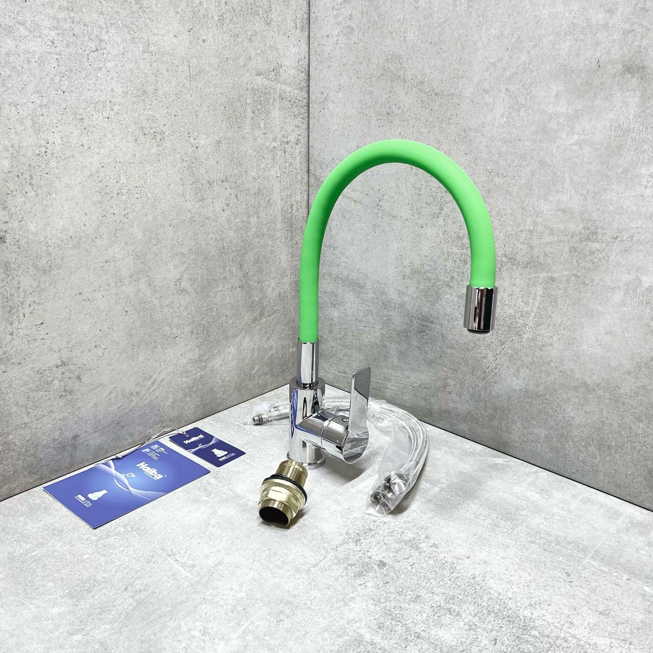 Смеситель для кухни Haiba с гибким изливом, зеленый/хром (HB70112-12)