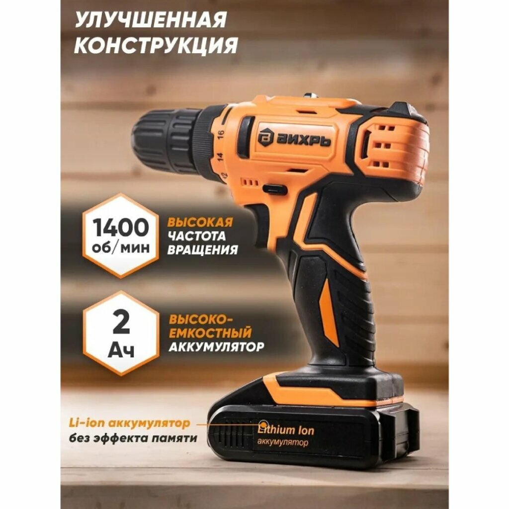 Вихрь ДА18Л2К Дрель-шуруповерт с АКБ 18.0В 2.0Ач 2АКБ,кейс вихрь
