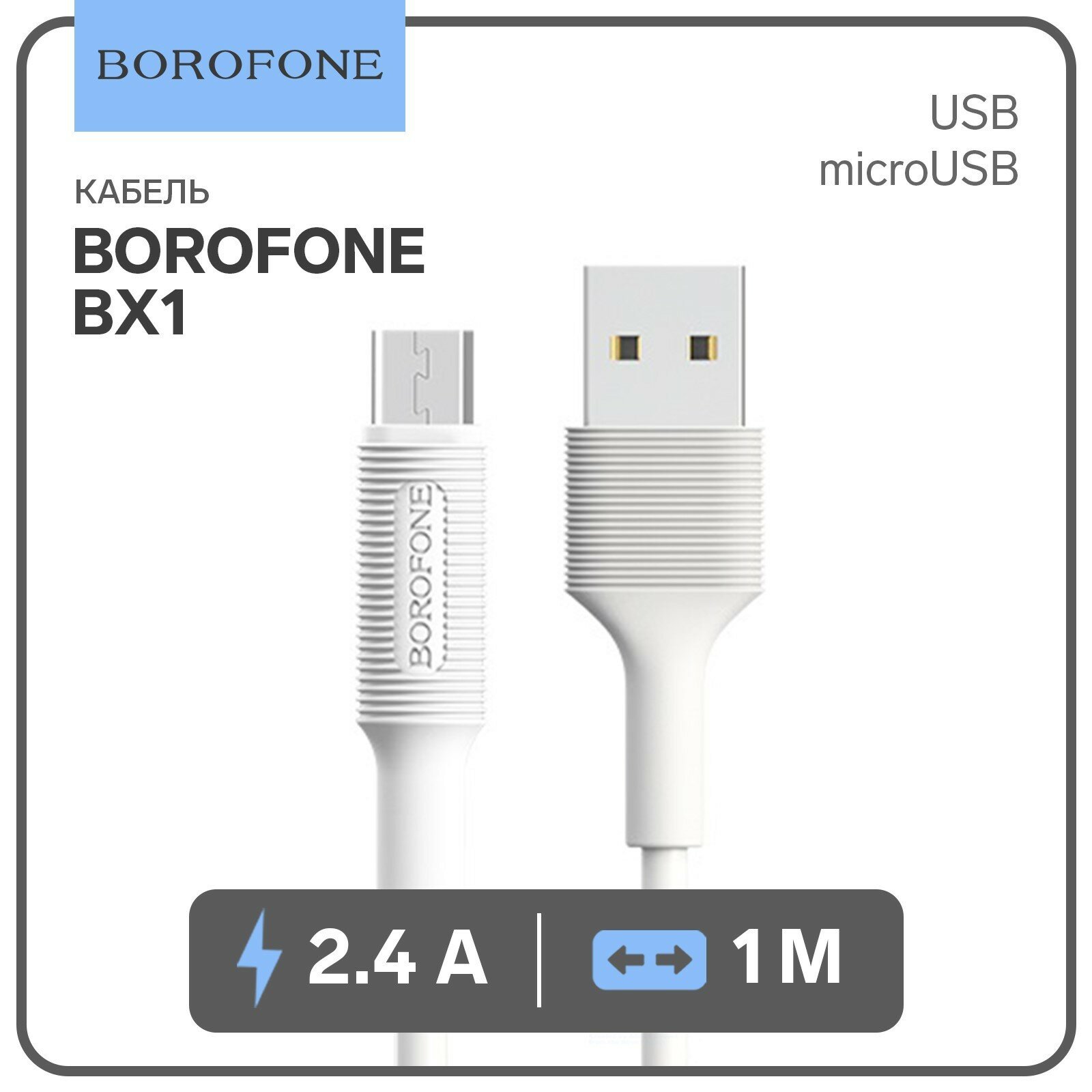 Кабель BOROFONE BX1 USB (m)-microUSB (m), 1 м, белый