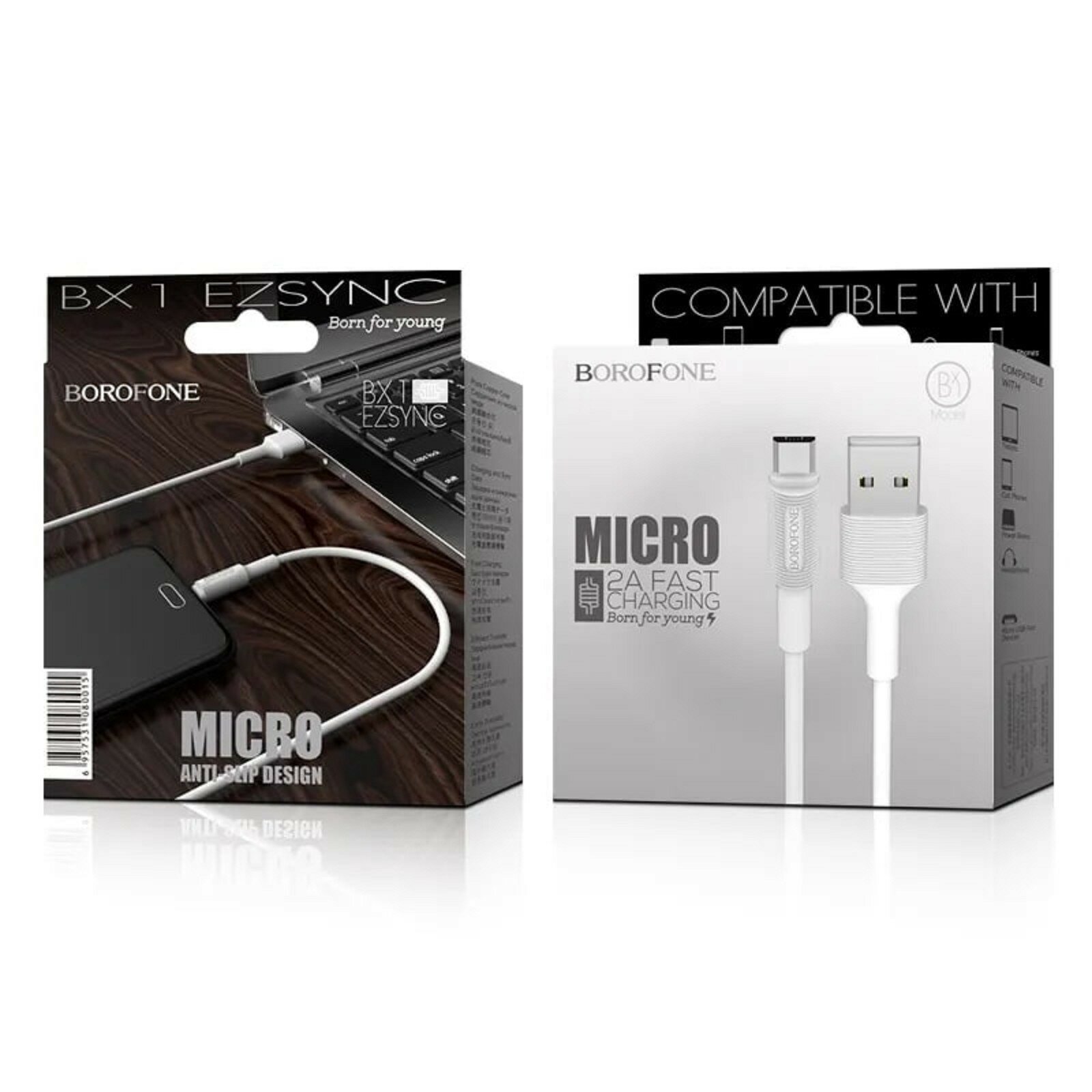 Кабель USB - микро USB Borofone BX1 EZSync, 1.0м, цвет белый