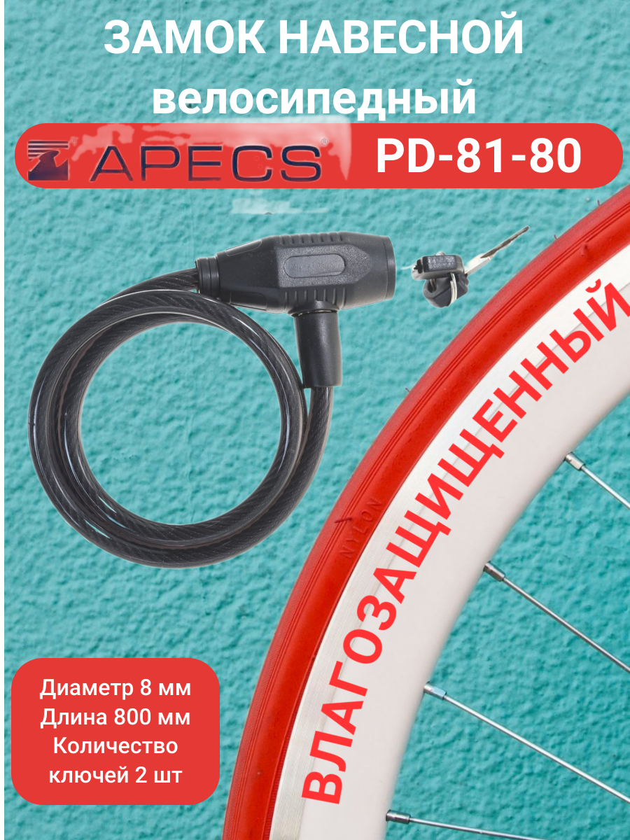 Замок велосипедный Apecs апекс pd-81-80 длина 800 мм, стальной трос