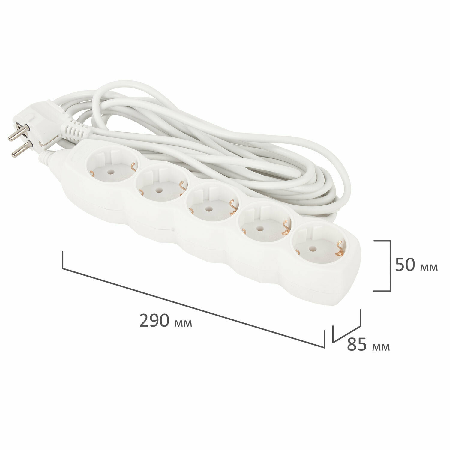 Удлинитель SONNEN U-155G, 5 розеток, с/з, 10А / 2200 Вт белый 5 м 290 мм 85 мм 50 мм 3 м² 5