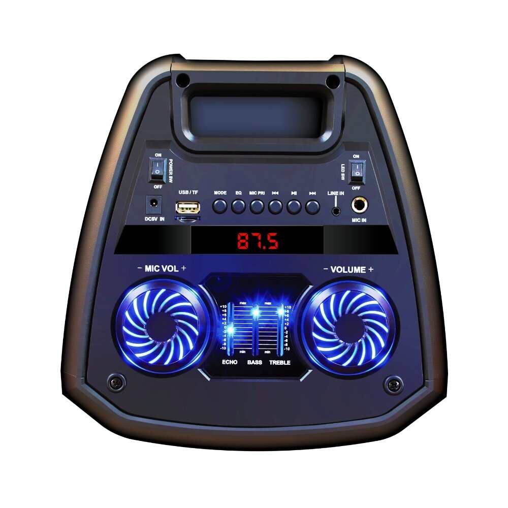 Купить Портативная беспроводная блютуз колонка / Музыкальный центр Ginzzu GM-208 с функцией Bluetooth v4.2 , Гарантия 2 года, 50Вт, USB-flash, microSD, FM-радио, пульт ДУ, эквалайзер, караоке, динамическая LED подсветка динамиков