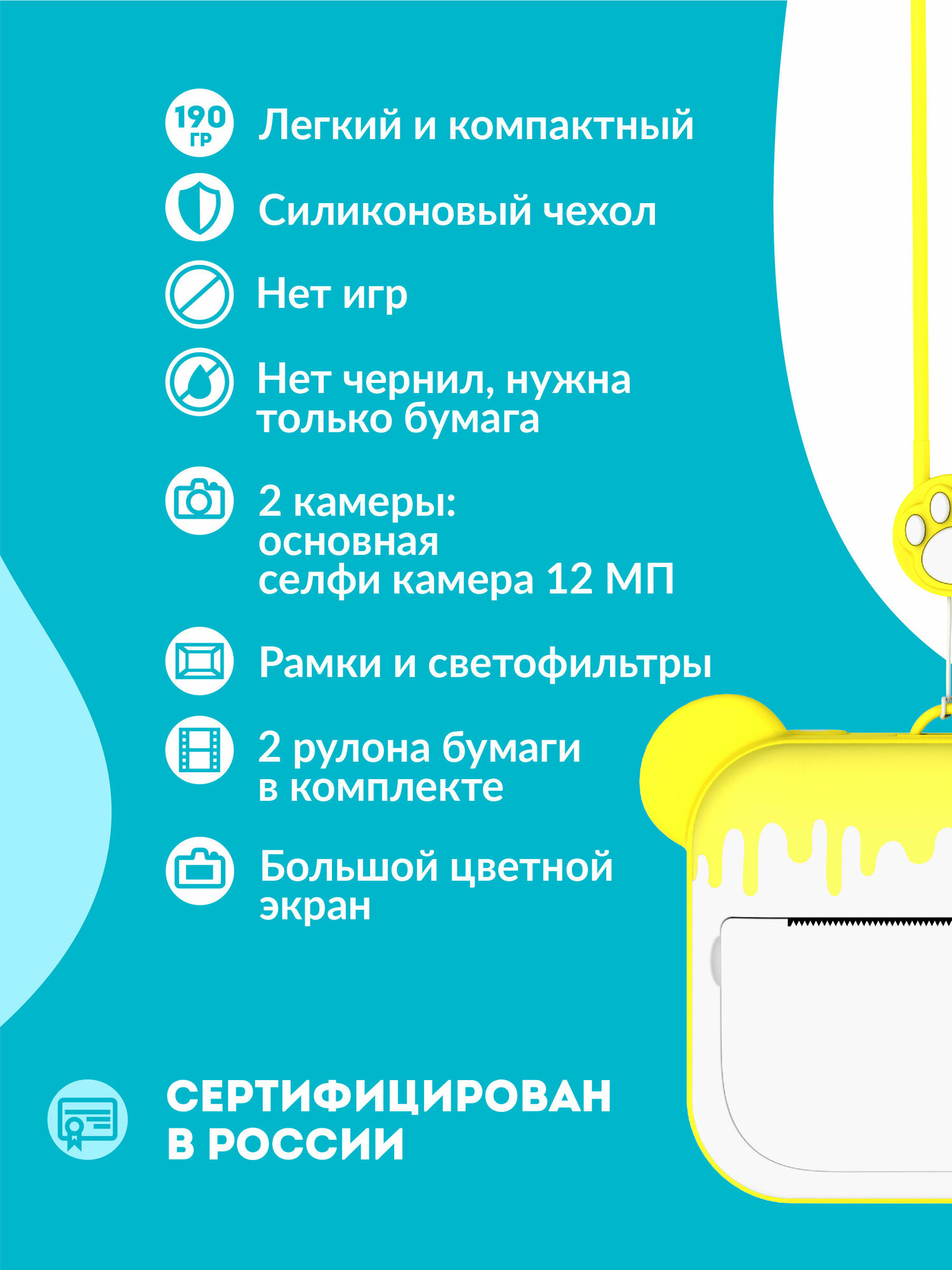 Детский фотоаппарат с мгновенной печатью фото / Полароид моментальной печати для ребенка LUMICUBE DK04 PRINTY LUMICAM (YELLOW)