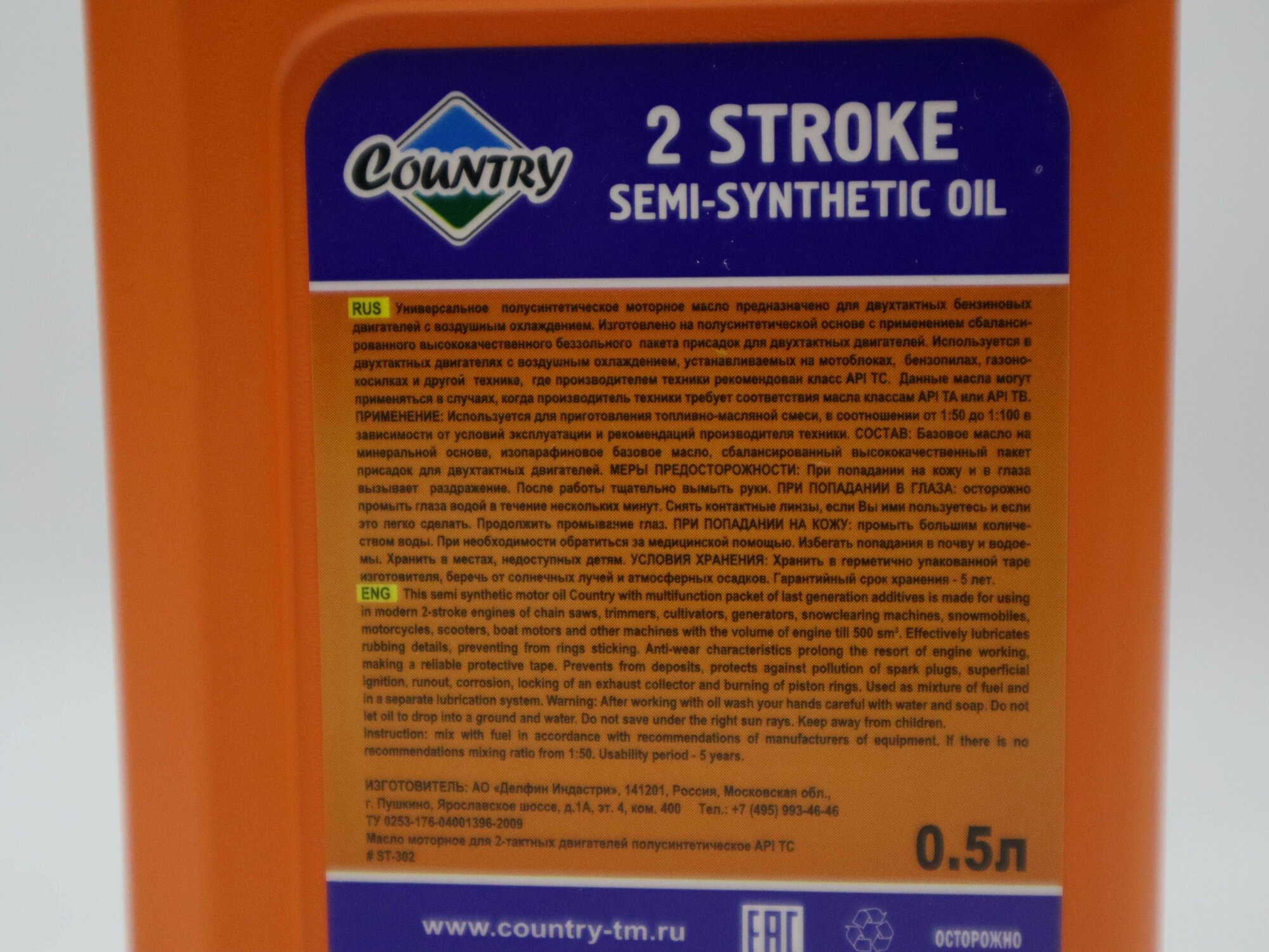 Моторное масло Country ST-302 2Т ТС 2-х тактное полусинтетическое 0,5л