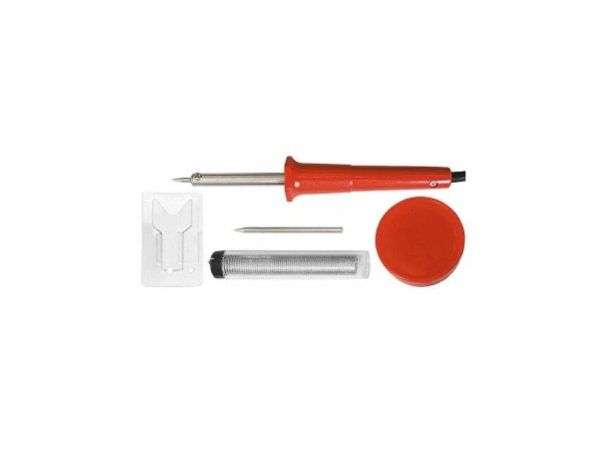 SPARTA Набор для пайки, 5 предметов: паяльник 30 Вт, подставка, жало, паста, припой 913113