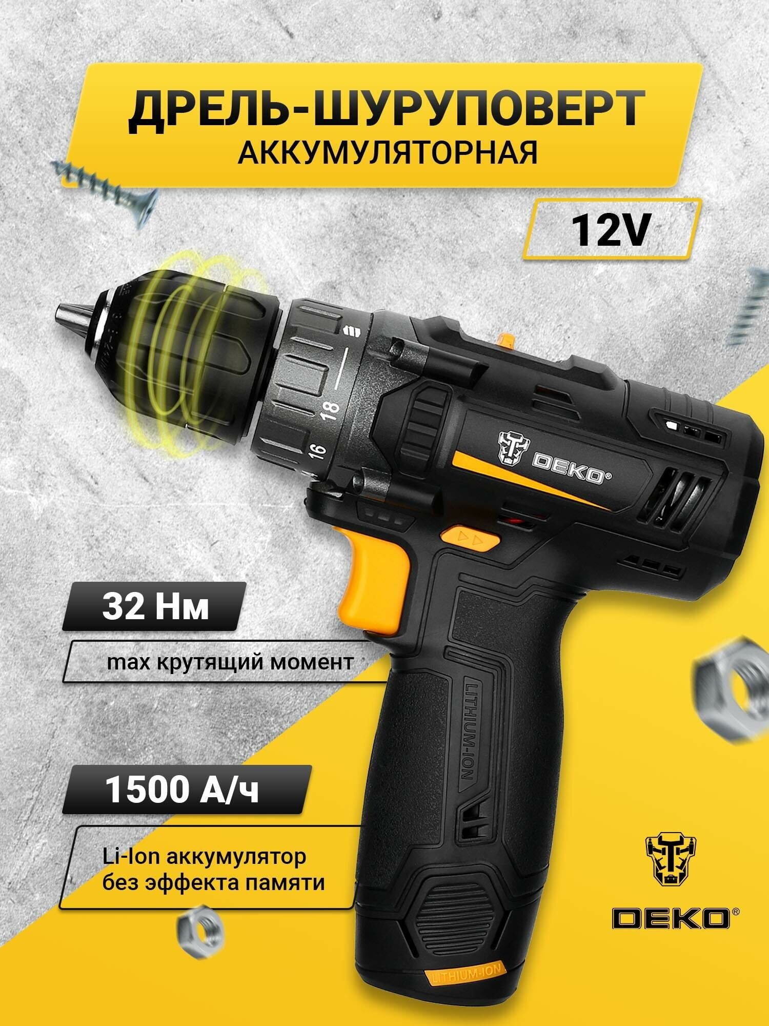 Дрель-шуруповерт DEKO GCD12DU3 (063-4096) черная