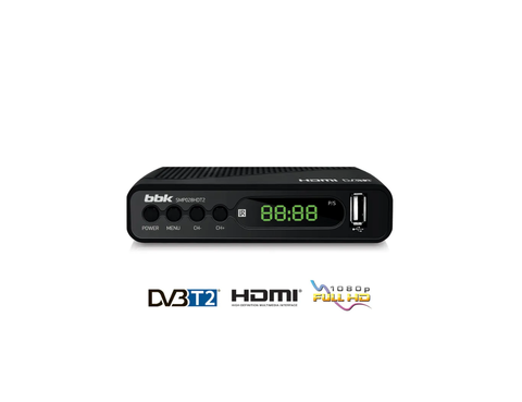 Цифровой телевизионный DVB-T2 ресивер BBK SMP028HDT2 черный, HDMI выход, DVB-T/T2, USB флеш, пульт ДУ, дисплей
