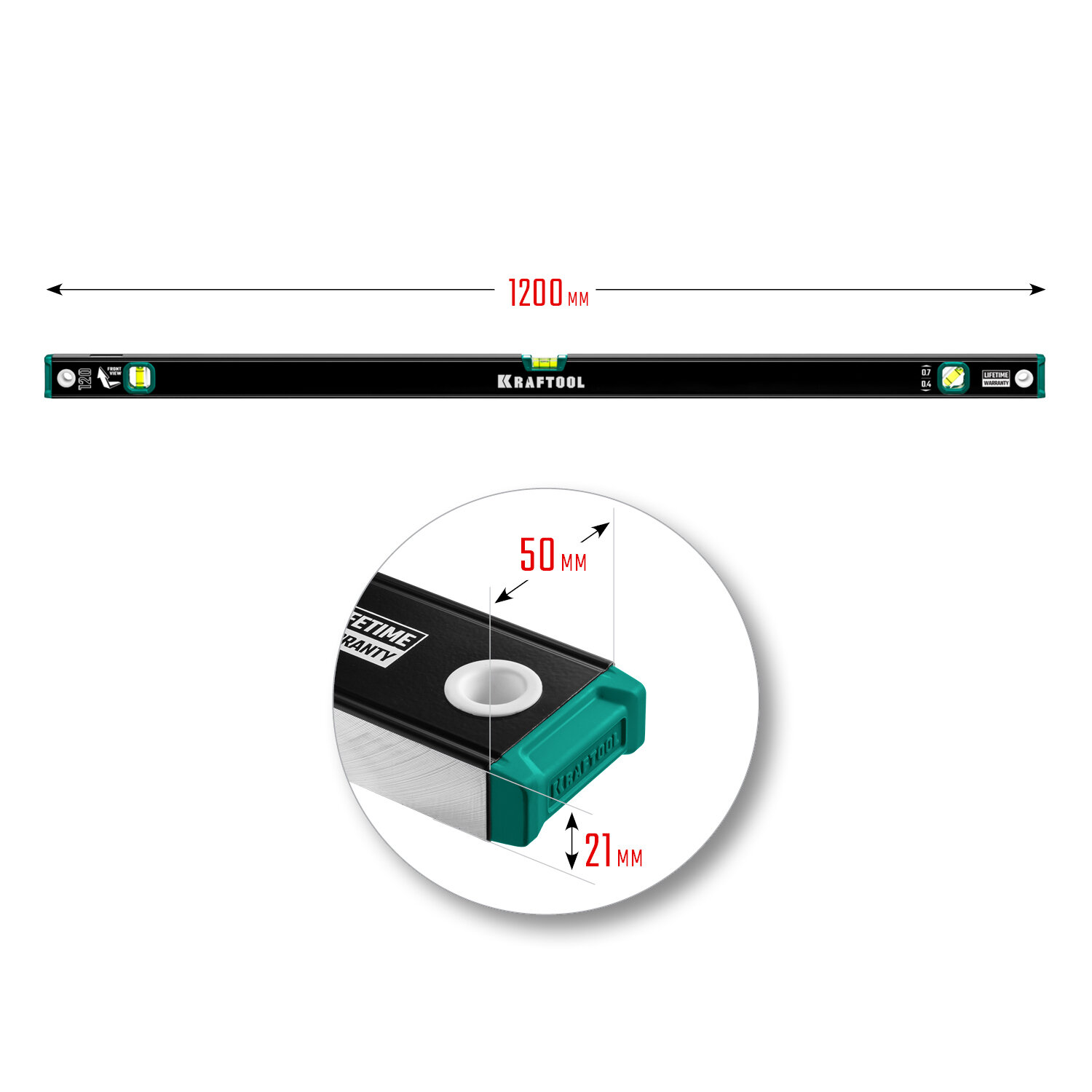 Уровень с зеркальным глазком, KRAFTOOL 1200 мм, (34781-120)