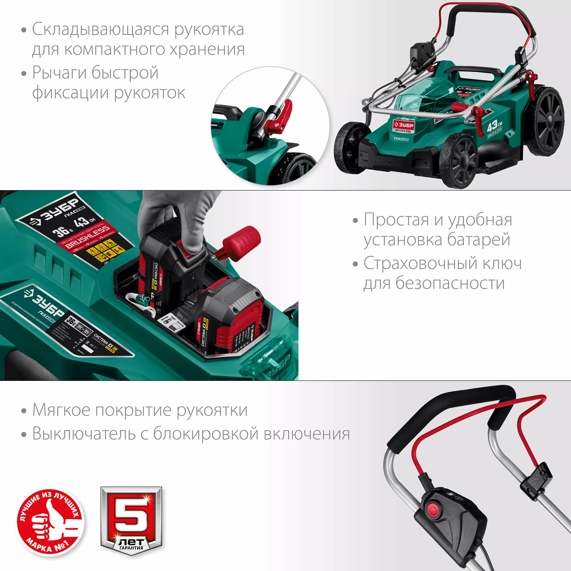 Газонокосилка аккумуляторная бесщеточная ЗУБР ГКЛ-4336 36 В, без АКБ