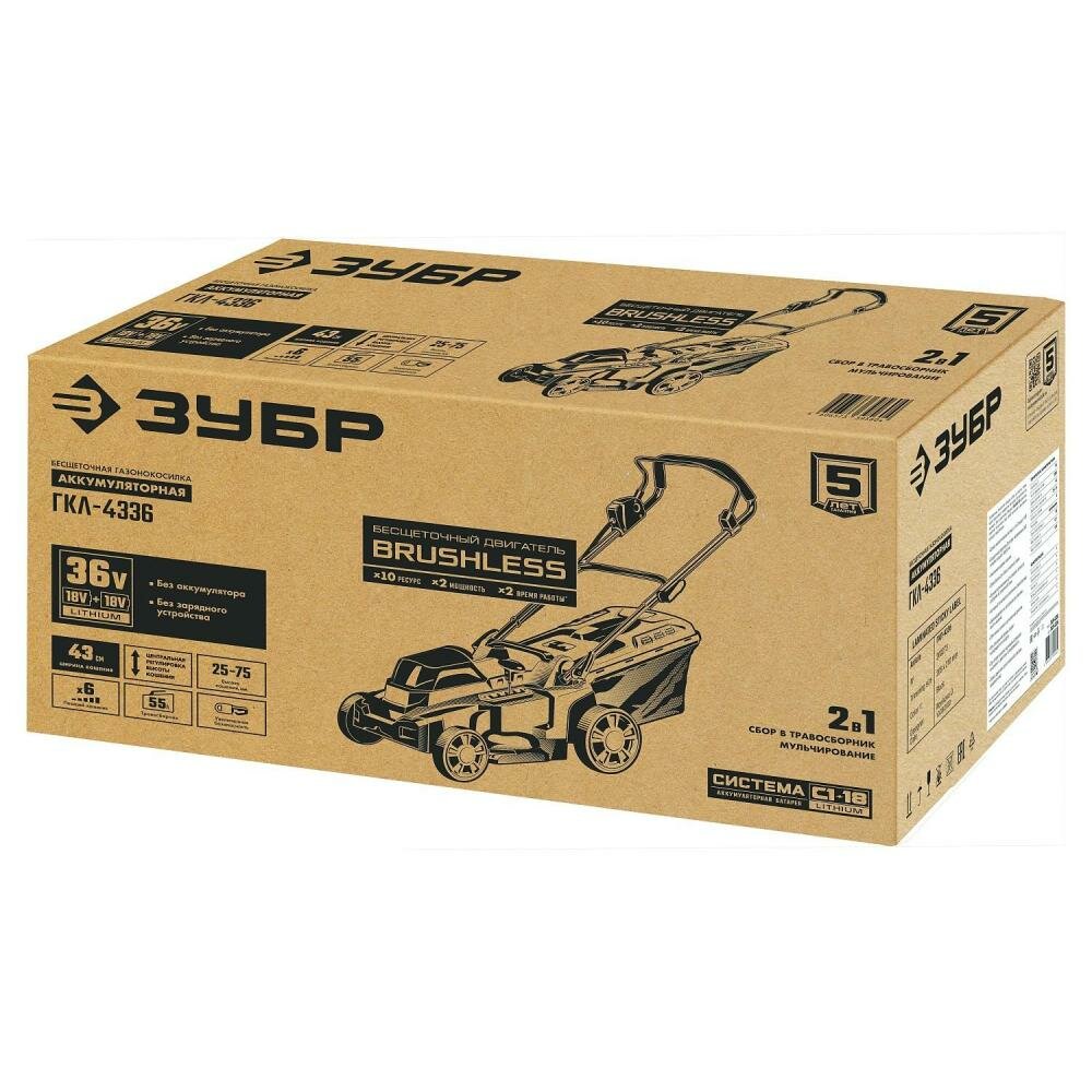 ЗУБР С1-18, 36 В, 43 см, без АКБ, бесщеточная газонокосилка (ГКЛ-4336)