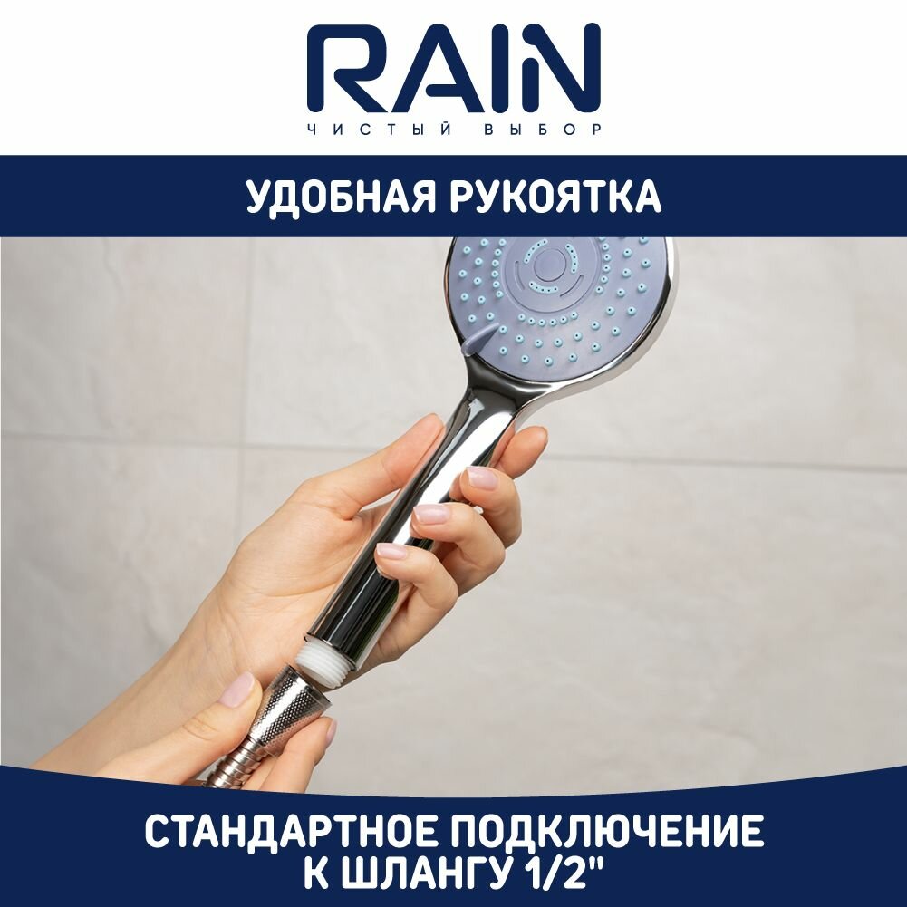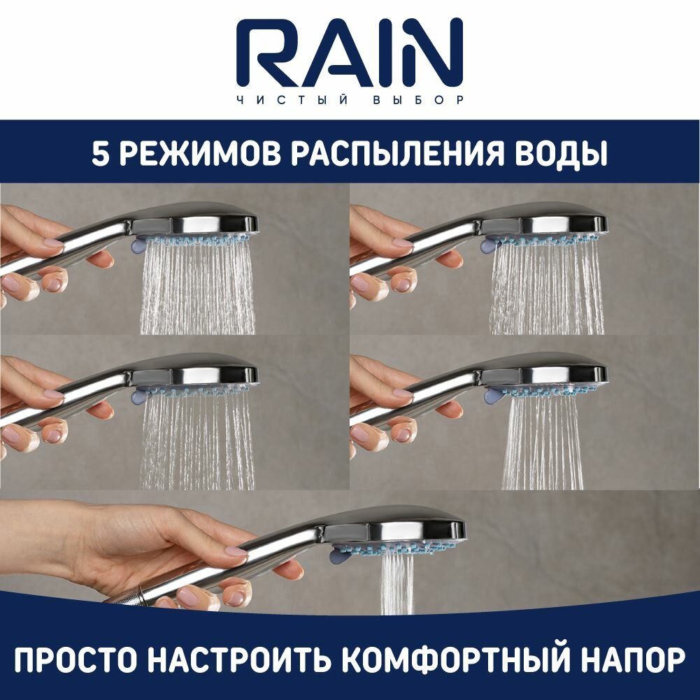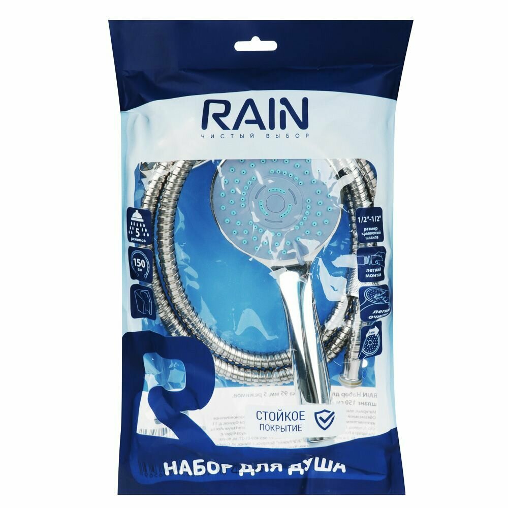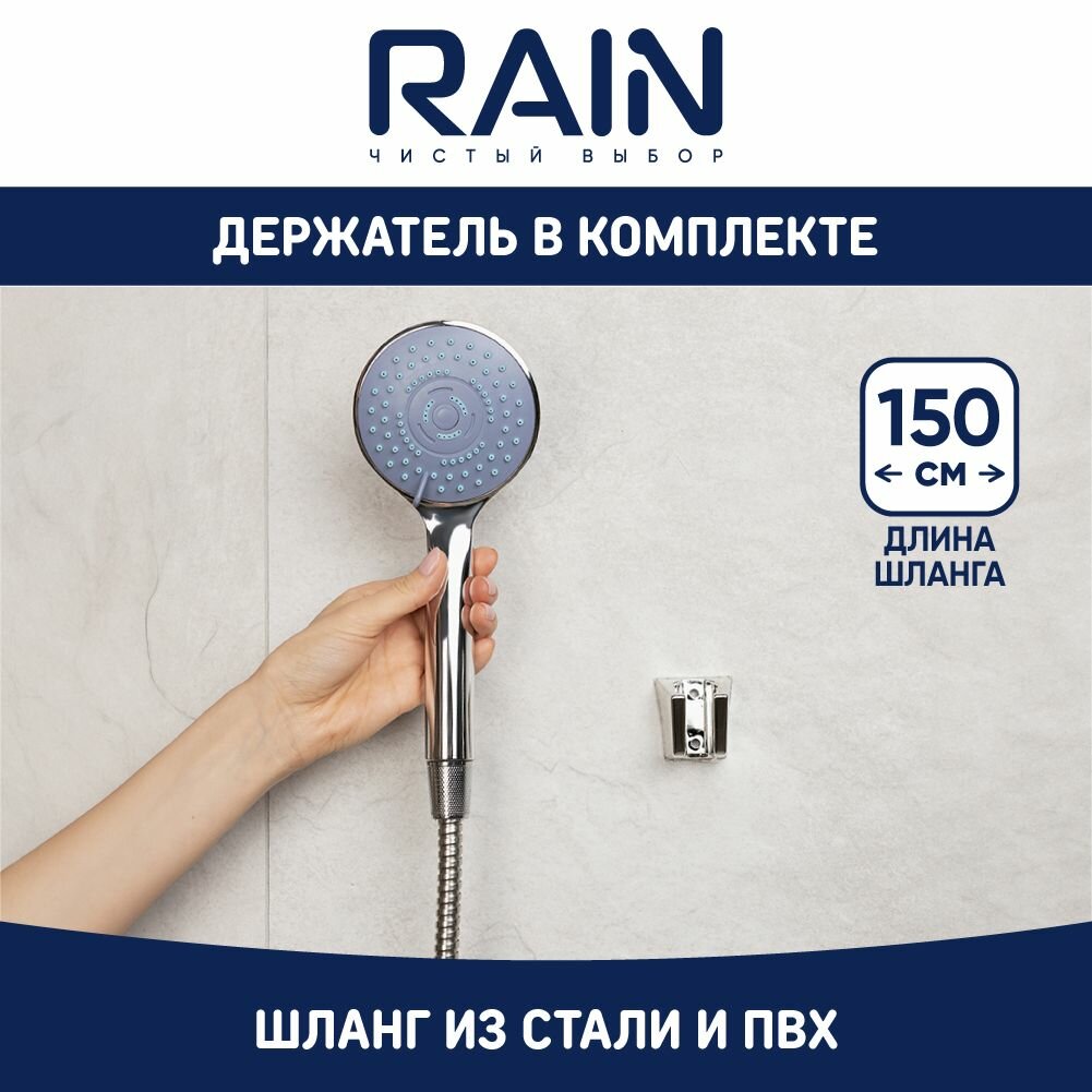 RAIN Набор для душа, лейка 95мм, 5 режимов, шланг 150см, держатель интересное: