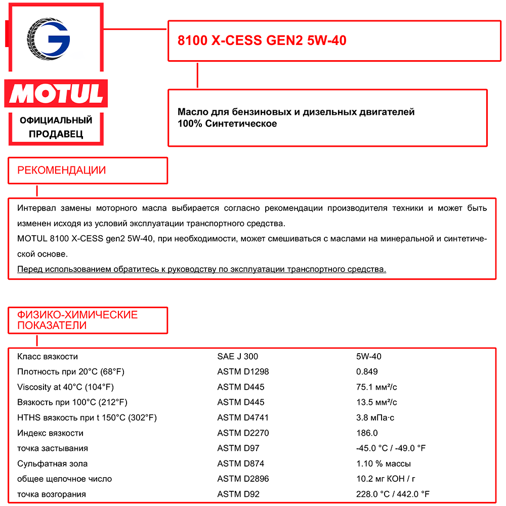 MOTUL 109774 MOTUL 5W40 8100 X-CESS GEN2 (1L)_масло мотор.!синт.\ACEA A3/B4,MB 229.5,RN0710/0700,VW 505 00/502 00