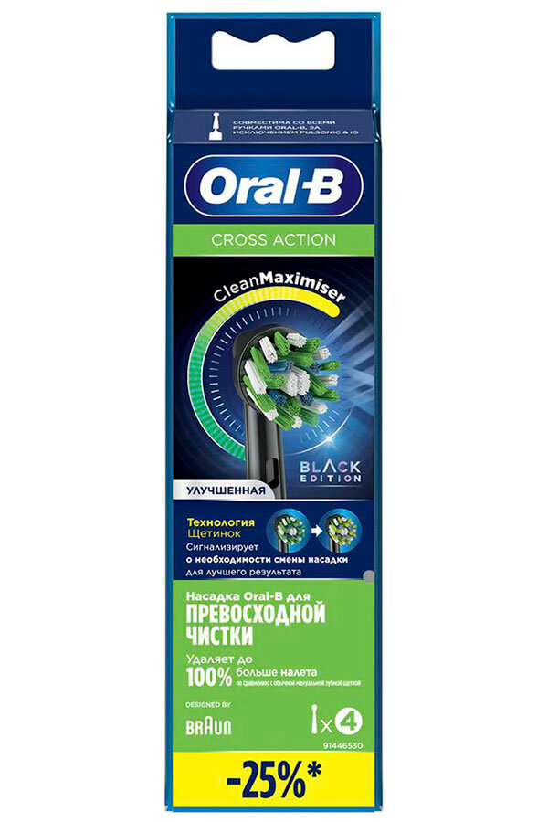 Набор сменных насадок Oral-B Cross Action Black для электрической зубной щетки, 4 шт.