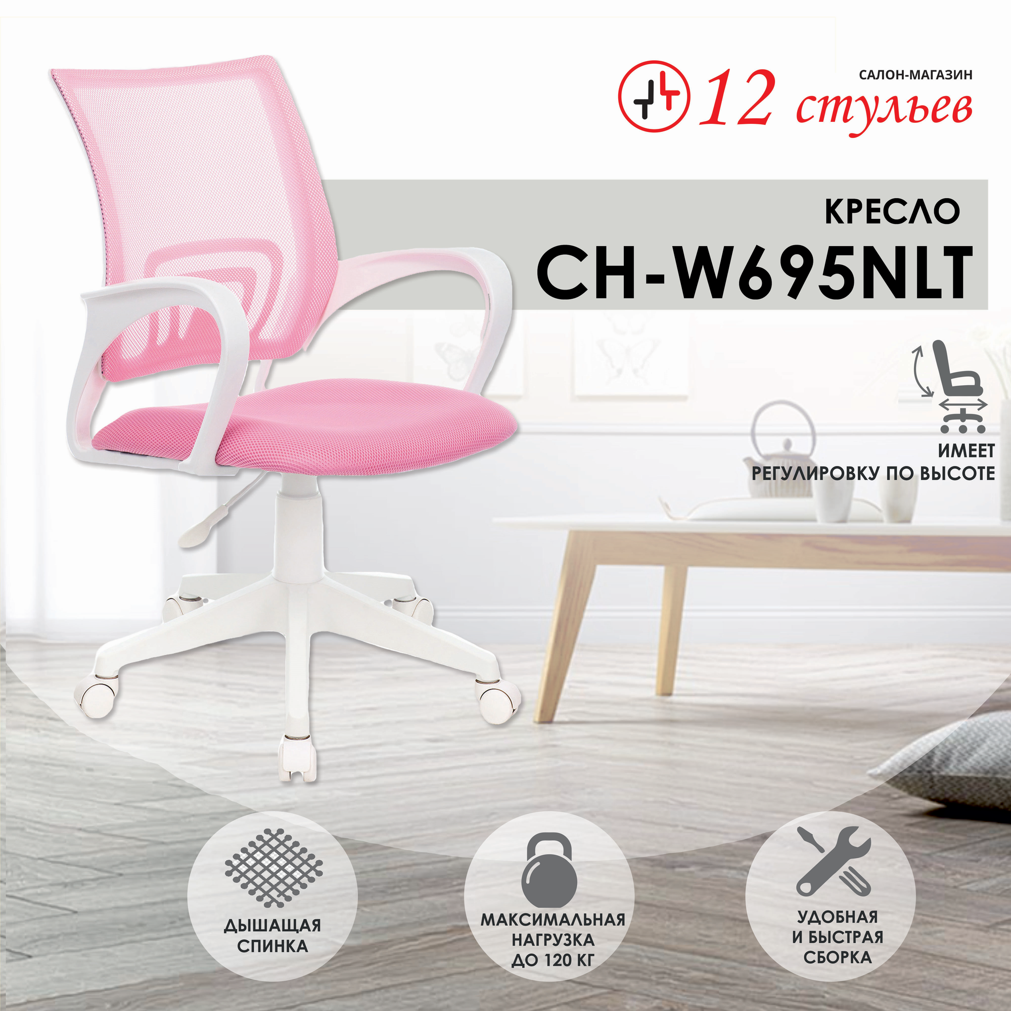 Кресло CH-W695NLT розовый TW-06A TW-13A сетка/ткань крестовина пластик пластик белый CH-W695NLT/PK/TW-13A