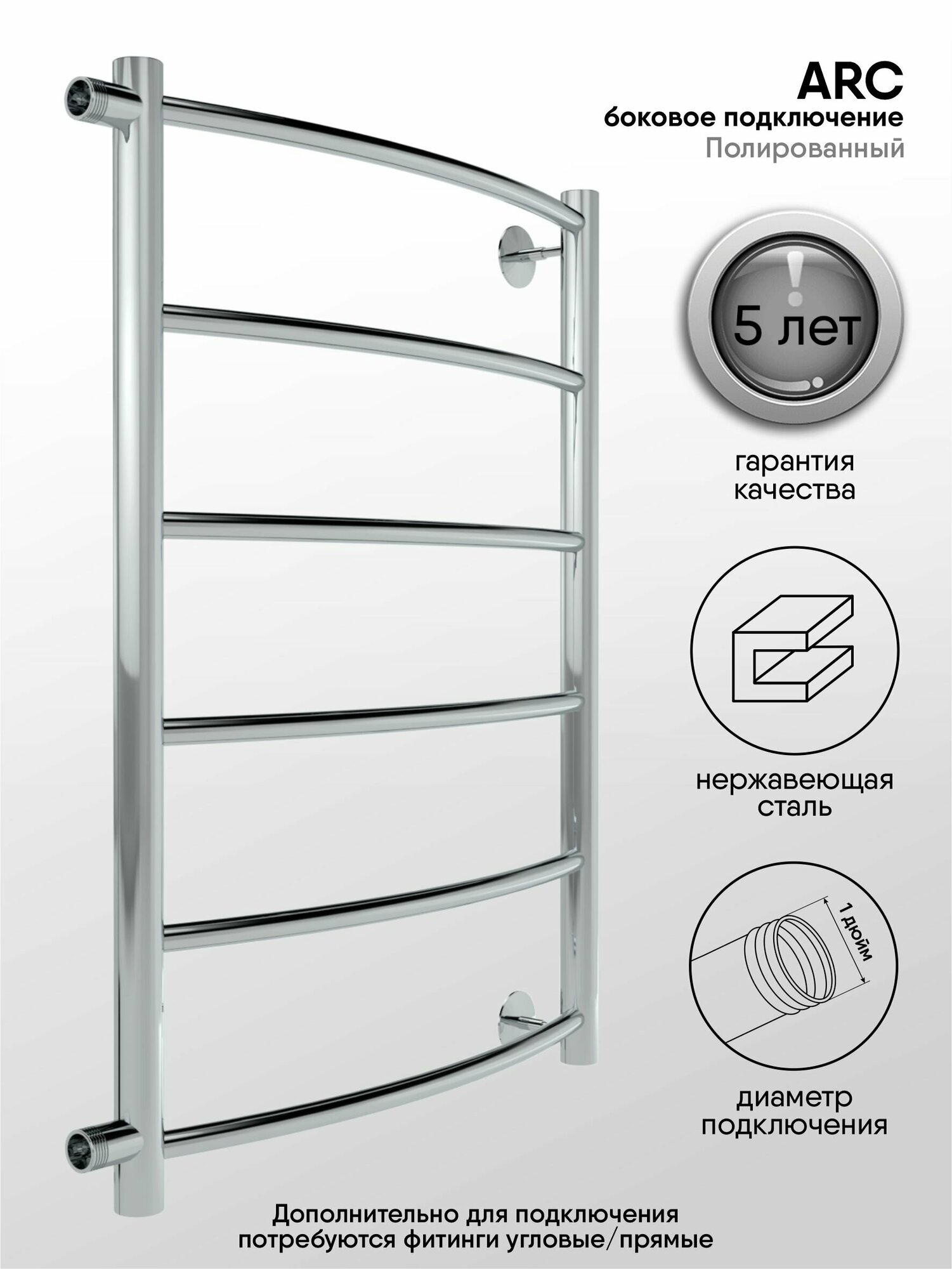 Полотенцесушитель водяной Arc 70/40 межосевое расстояние 60 боковое подключение , Полированный INDIGO
