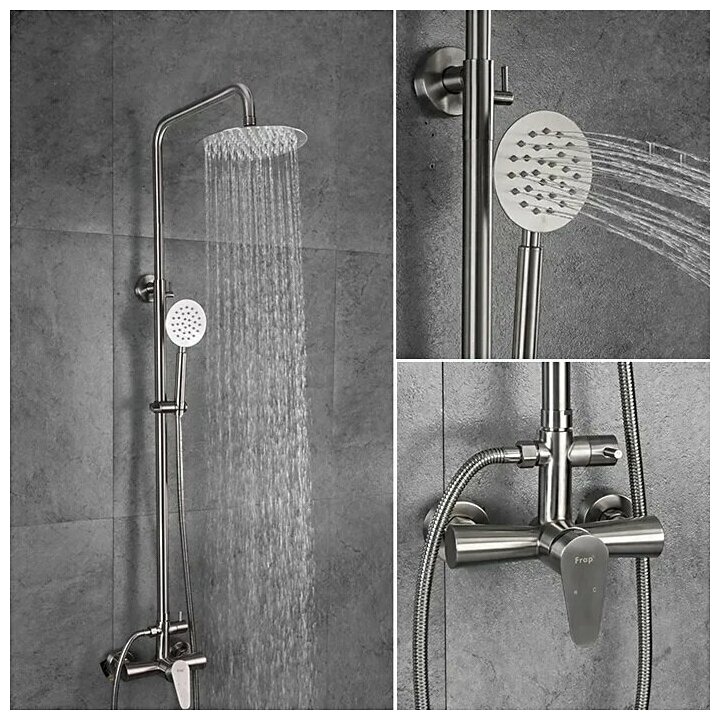 2448 Душевая система Frap с верхним душем, смесителем и ручной лейкой, нерж интересное: