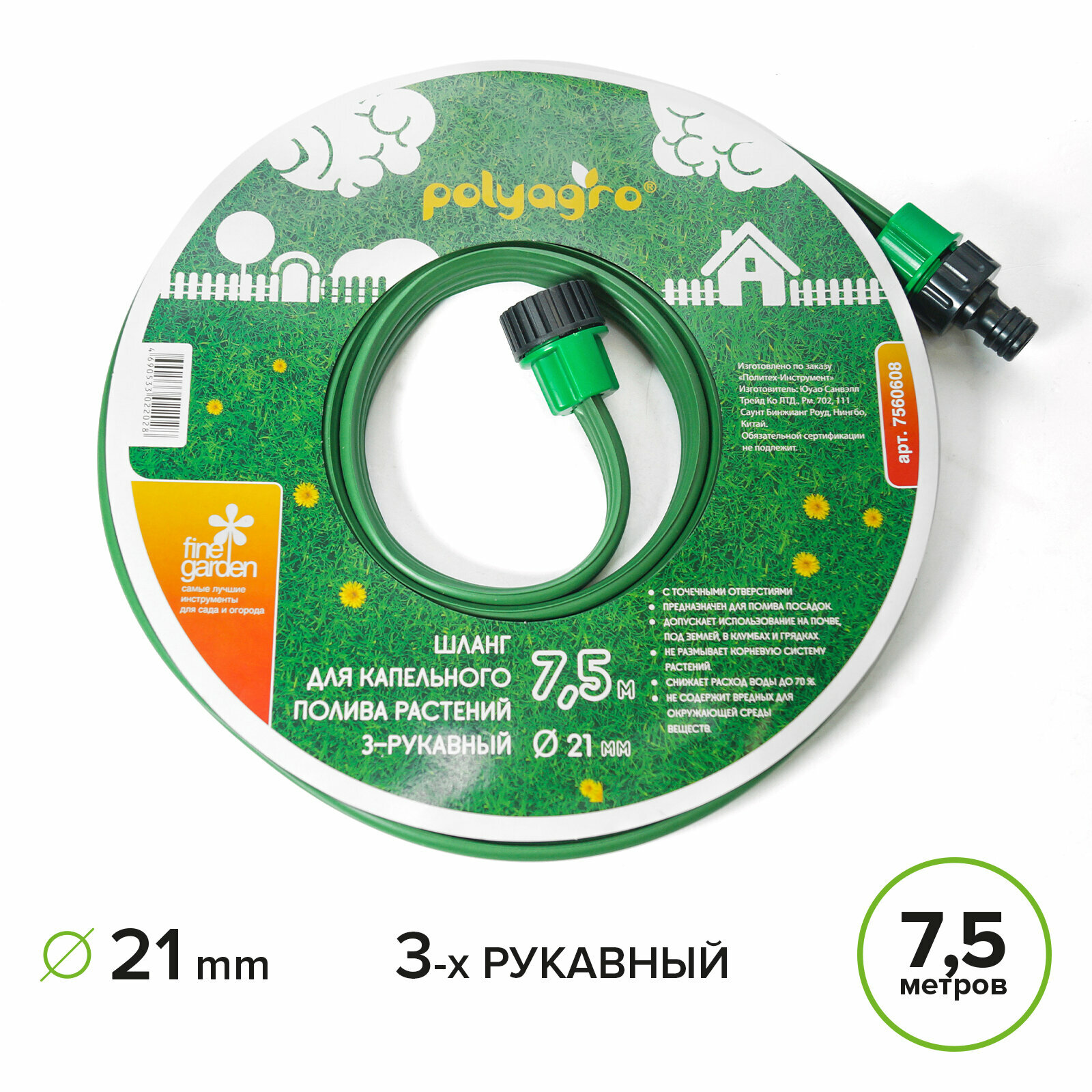 Шланг для полива, капельный 7,5 м дождеватель 3х-рукавный, Polyagro интересное: