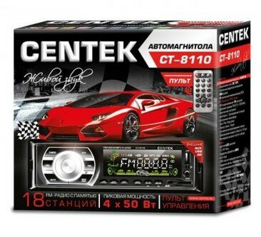 Centek Автомагнитола 4х50 Вт пульт, SD/MMC/USB, MP3, цветной LED, память 18 станций CT-8110