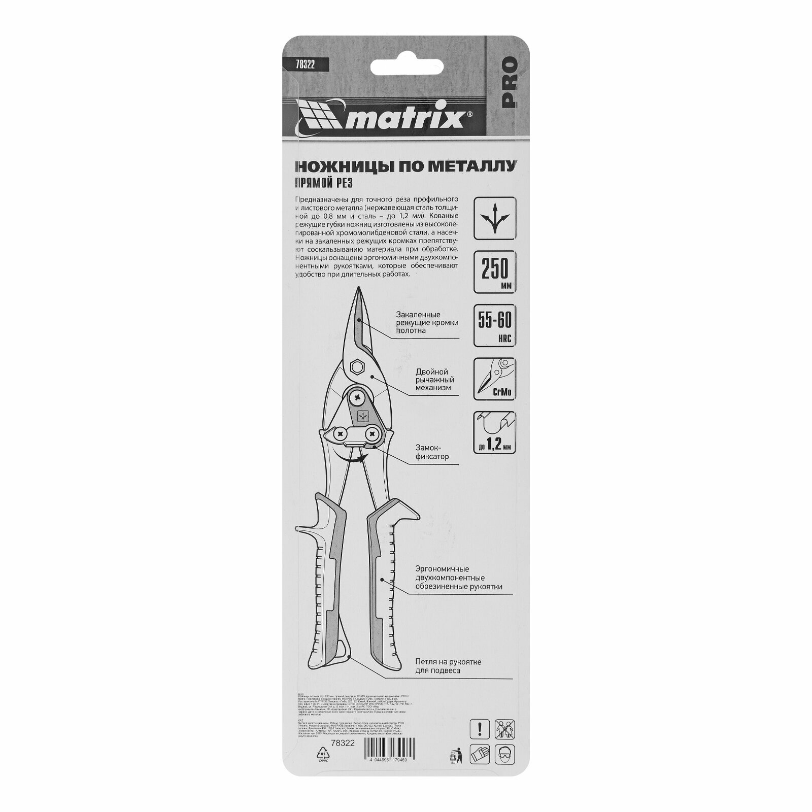 Ножницы по металлу Matrix 78322 250 мм прямой рез сталь CRMO двухкомпонентные рукоятки PRO