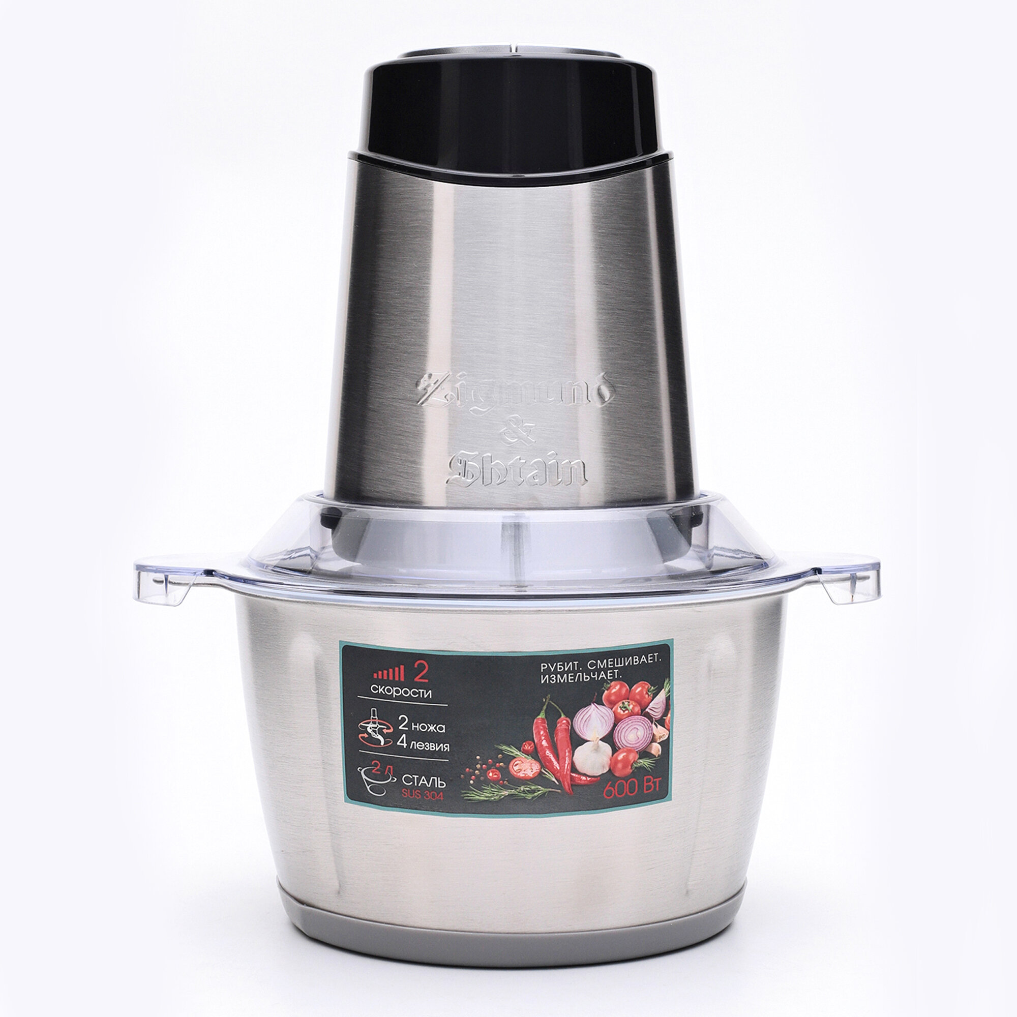 Измельчитель Zigmund&Shtain CH-31R /нерж.,600Вт, объем чаши 2л, универсальный нож/
