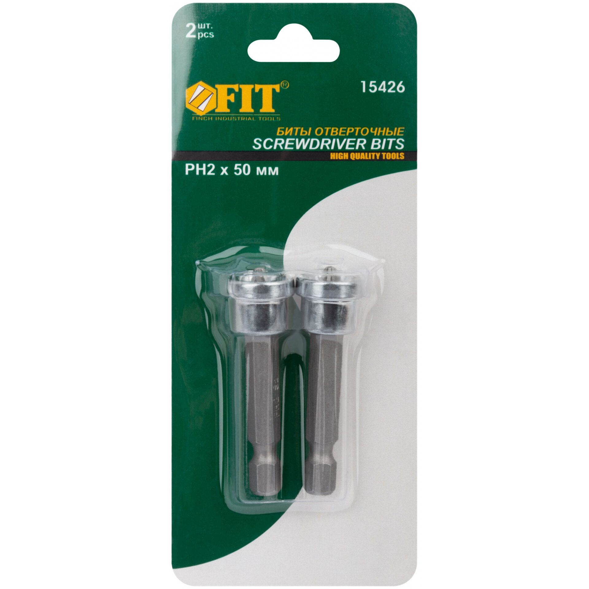 Насадки д/быстрого завинч.самор.по гипр., набор 2 шт, сталь S2 Профи, PH2 x 50 мм | код.15426 | FIT (10шт.в упак.)