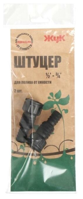 Жук Набор штуцеров для капельного полива от ёмкости, 1/2" (12 мм) -3/4" (19 мм), 2 шт., "Жук"