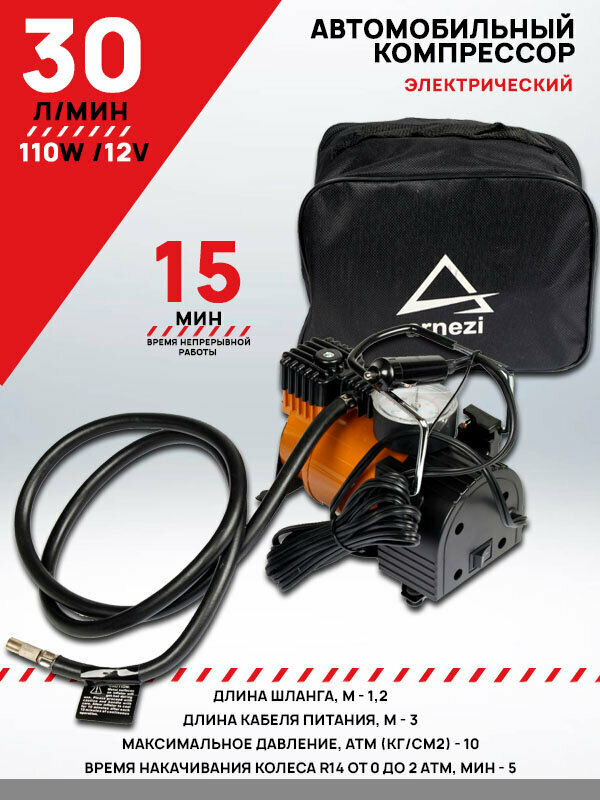 Компрессор автомобильный 10Атм 30л/мин 110Вт 10А ARNEZI