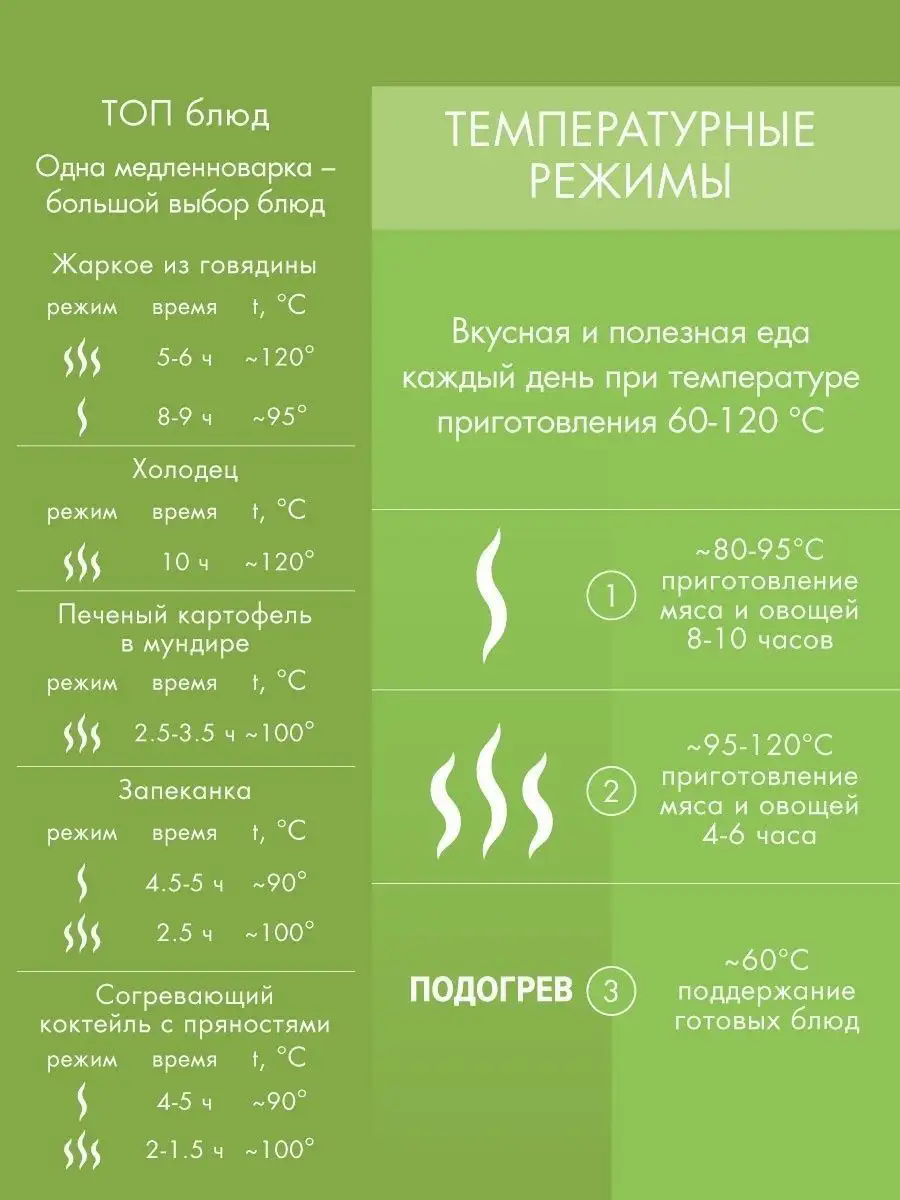 | Отзыв: | Не зависит от плиты, чем и удобна в первую очередь. Вместительность тоже хороша, чаша 4,5 л. Есть ещё точно такая же медленноварка, но объёмом почти в двое больше, то есть 8 л, но я выбрала эту. Инструкция довольно понятно объясняет её использование. Медленноварка подходит для любых блюд, рыбных, мясных, овощных и даже для йогуртов. И их польза существенно возрастает, так как медленноварка работает более "мягко" и сохраняет все полезные свойства продуктов по максимуму, ради этого такая вещь стоит покупки. Чаша керамическая и керамику я тоже засчитываю как плюс, но помните, что нельзя класть в горячую керамическую чашу что-то ледяное, иначе перепад температур может спровоцировать появление трещин. |