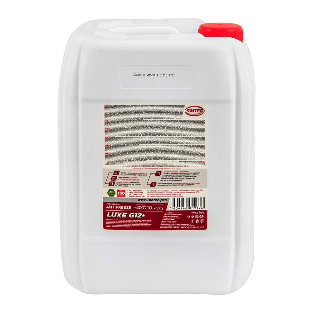 Жидкость Охлаждающая Низкозамерзающая Sintec Antifreeze Luxe G12+ Red -45 10Кг SINTEC арт. 613504