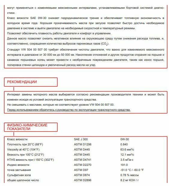 | Класс вязкости SAE | 0W-30 |